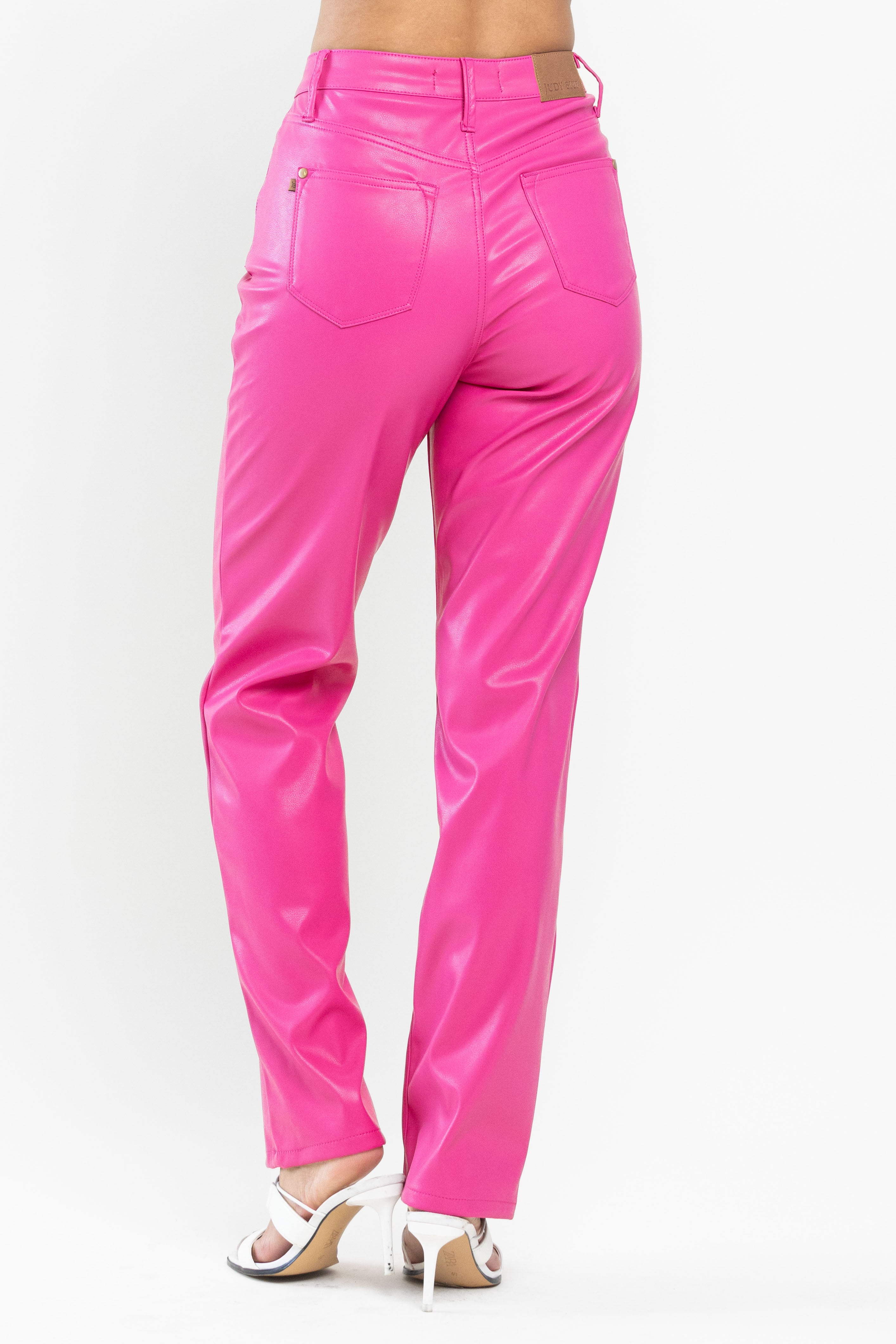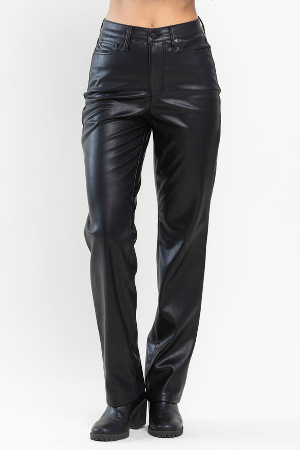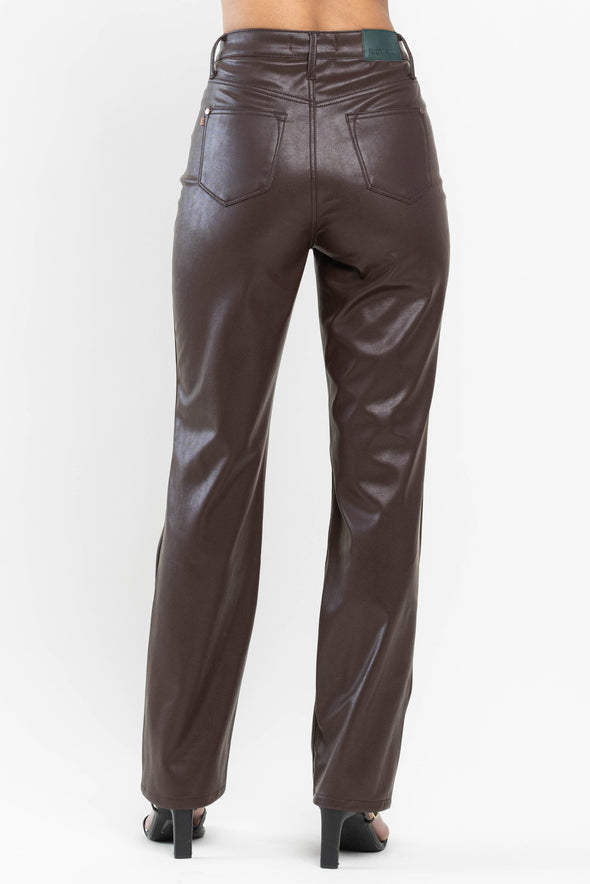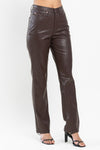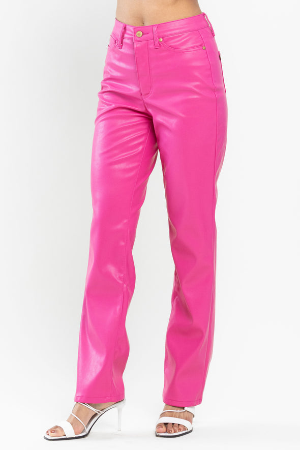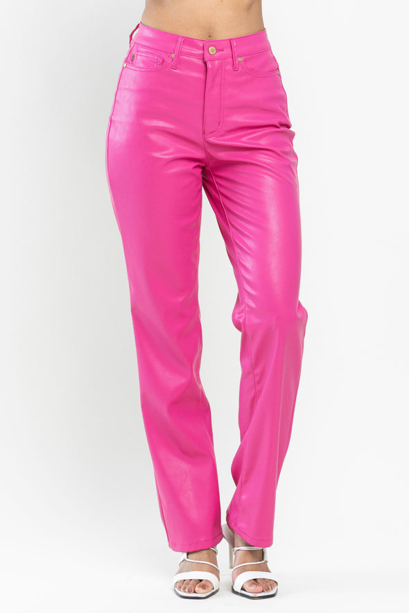 Judy Blue High Waisted Tummy Control Faux Leather Straight In Espresso Black Or Hot Pink SIZES (1-15, 14W-22W)