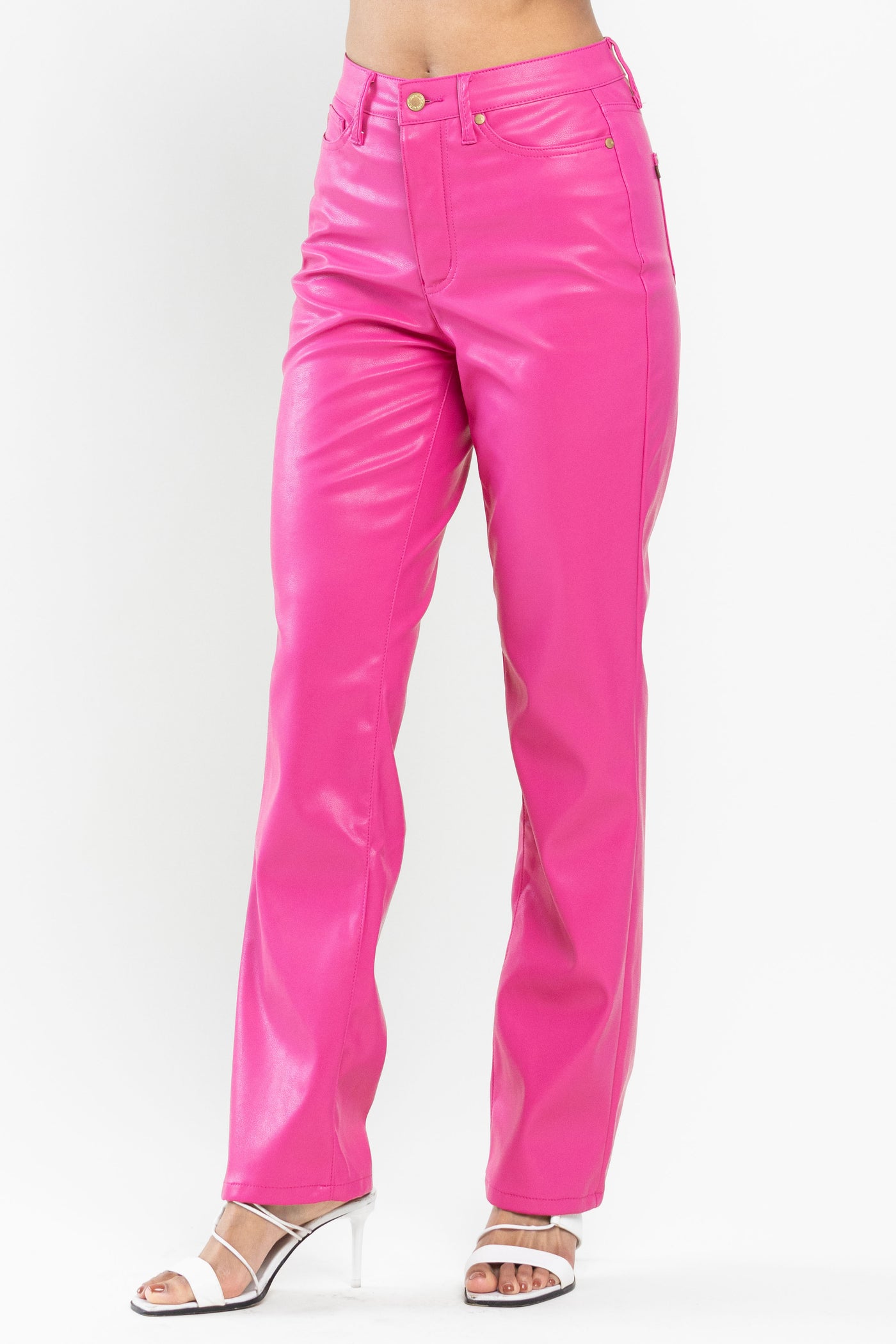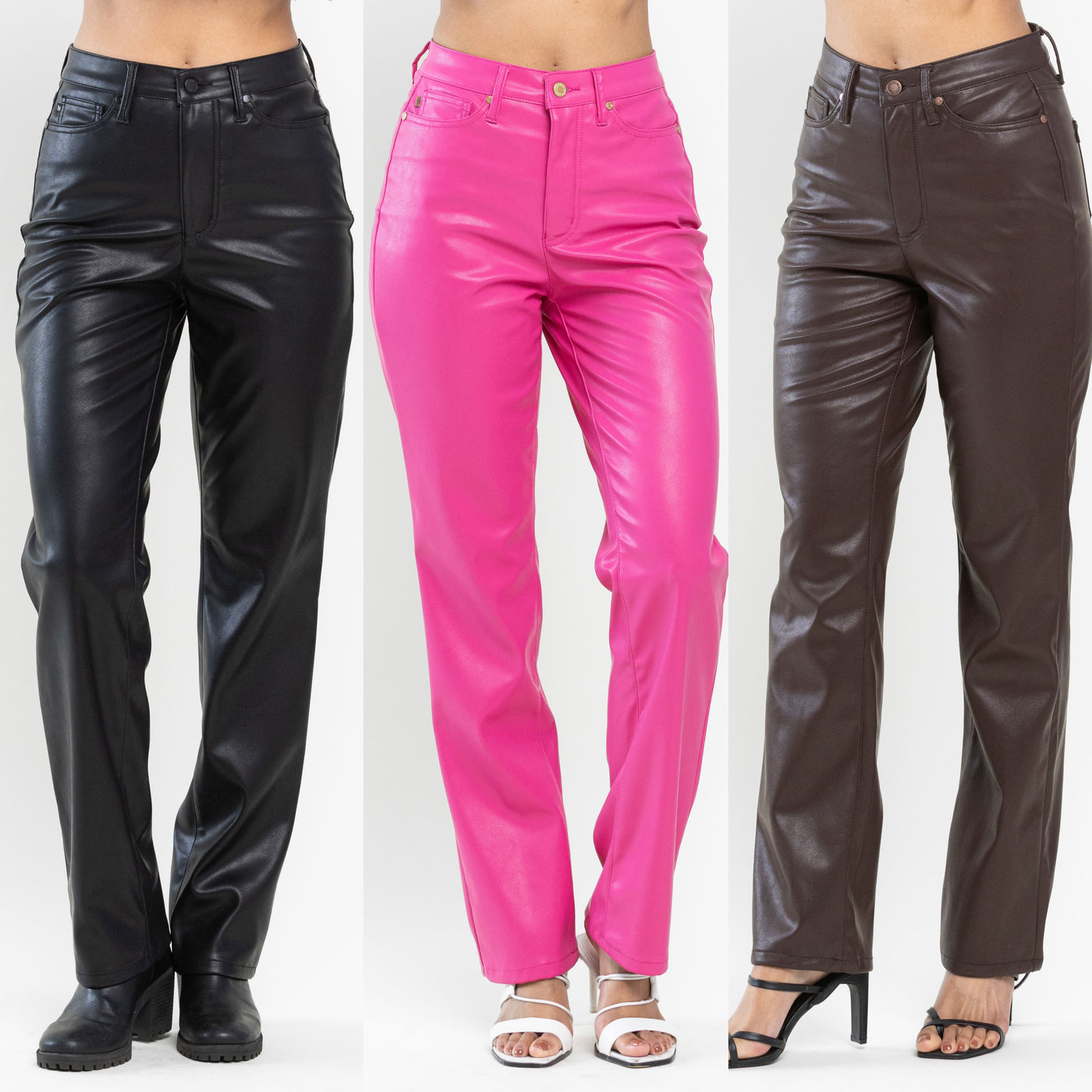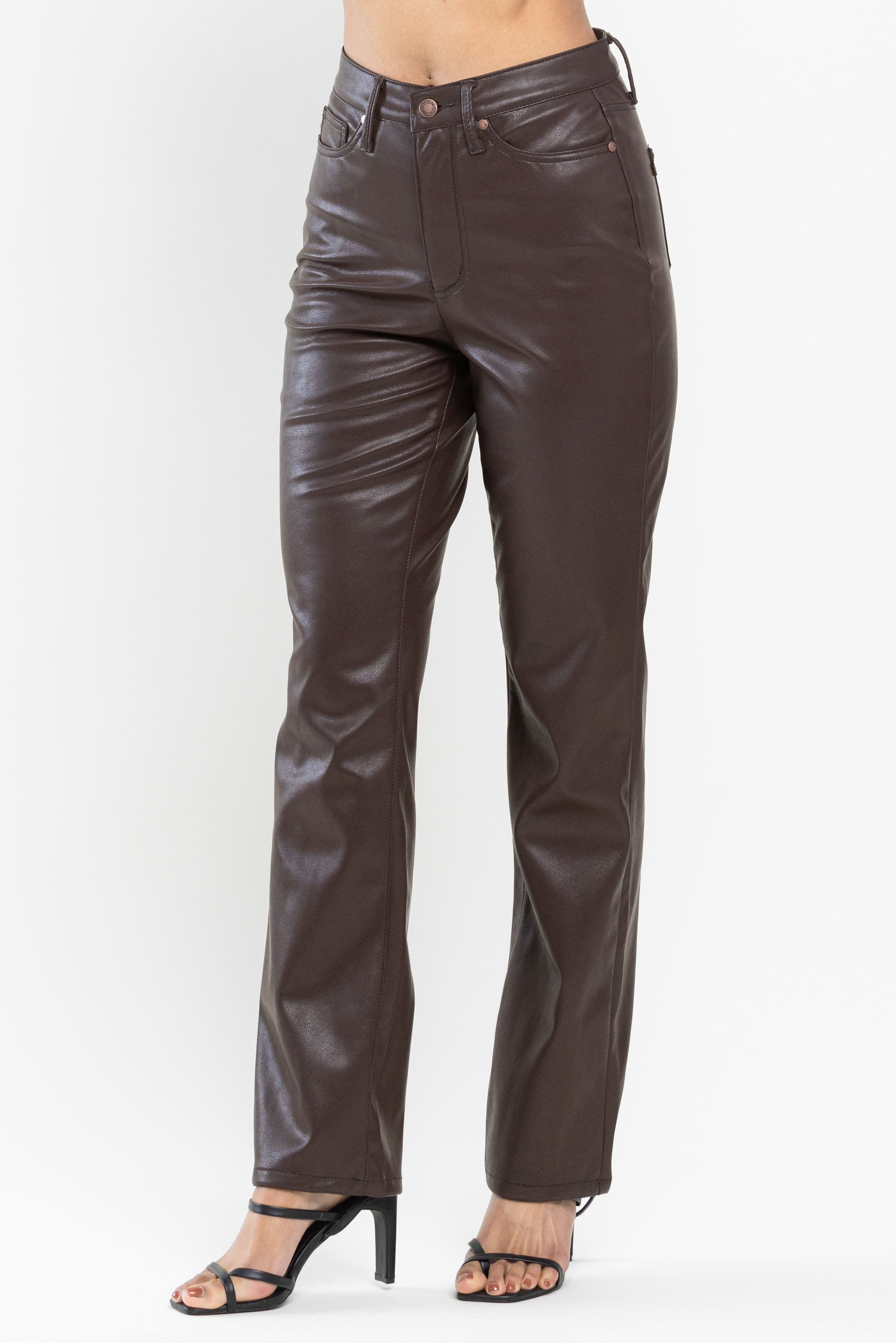 Judy Blue High Waisted Tummy Control Faux Leather Straight In Espresso Black Or Hot Pink SIZES (1-15, 14W-22W)