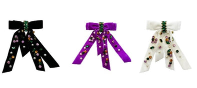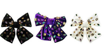 White Mardi Gras Beaded Hair Bow