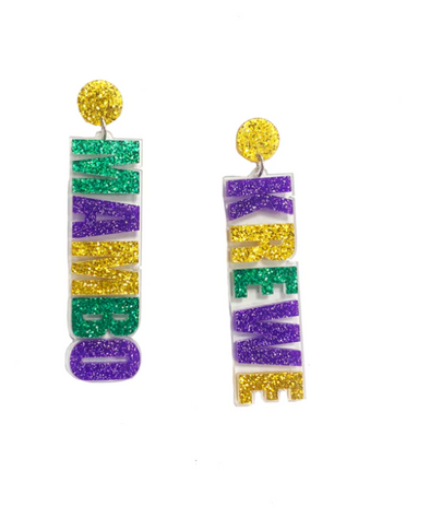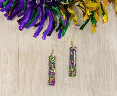 Acrylic Mardi Gras Glitter Stick Earrings