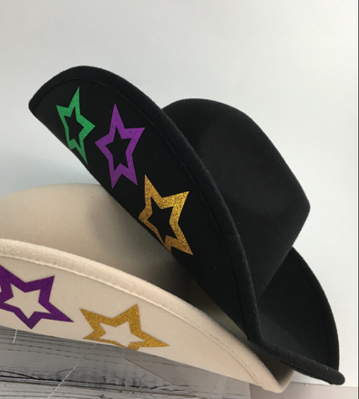 Black Mardi Gras Star Cowboy Hat