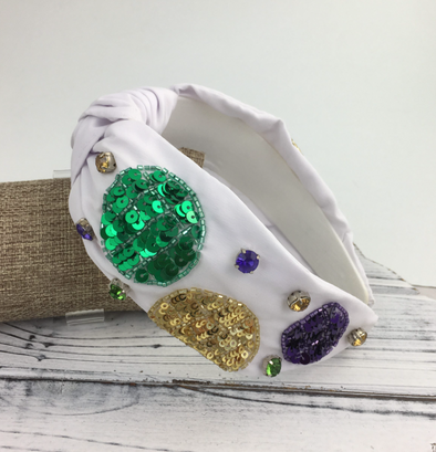 White Mardi Gras Sequin And Stone Knot Headband
