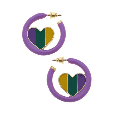 Mardi Gras Enamel Heart Hoop Earrings
