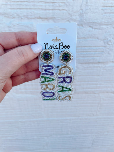 Mardi Bow Beaded Earring
