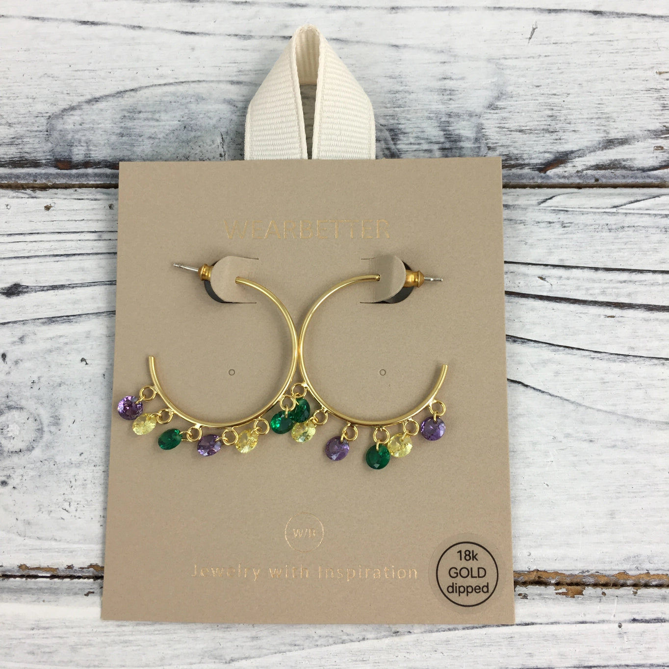 Mardi Gras 7 Gem Dangle Hoop Earrings