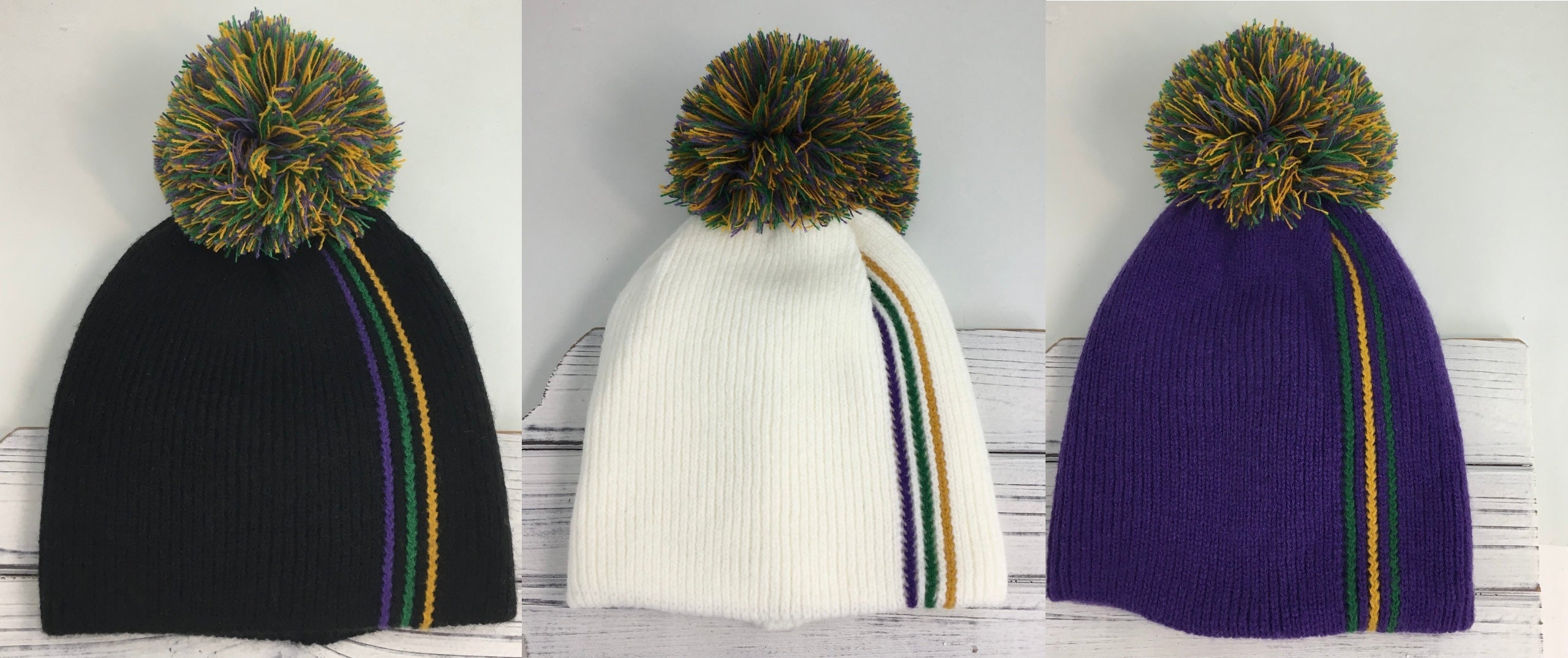 Mardi Gras Striped Beanie in 3 Colors