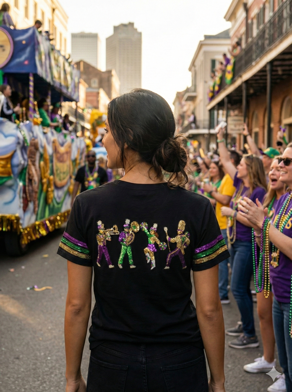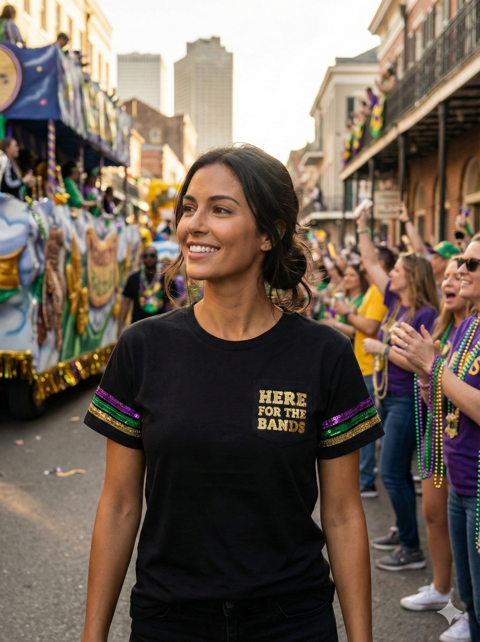 Mardi Gras Sequined Here for the Bands Top (XS-XXL)