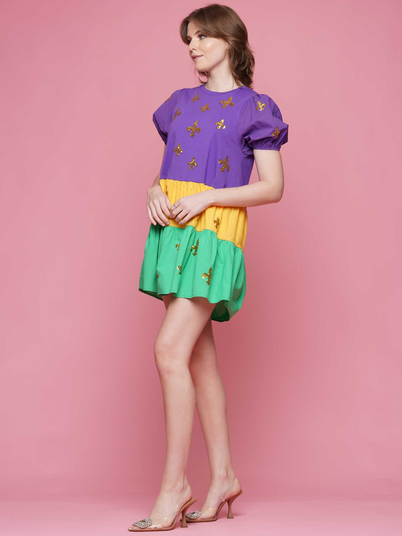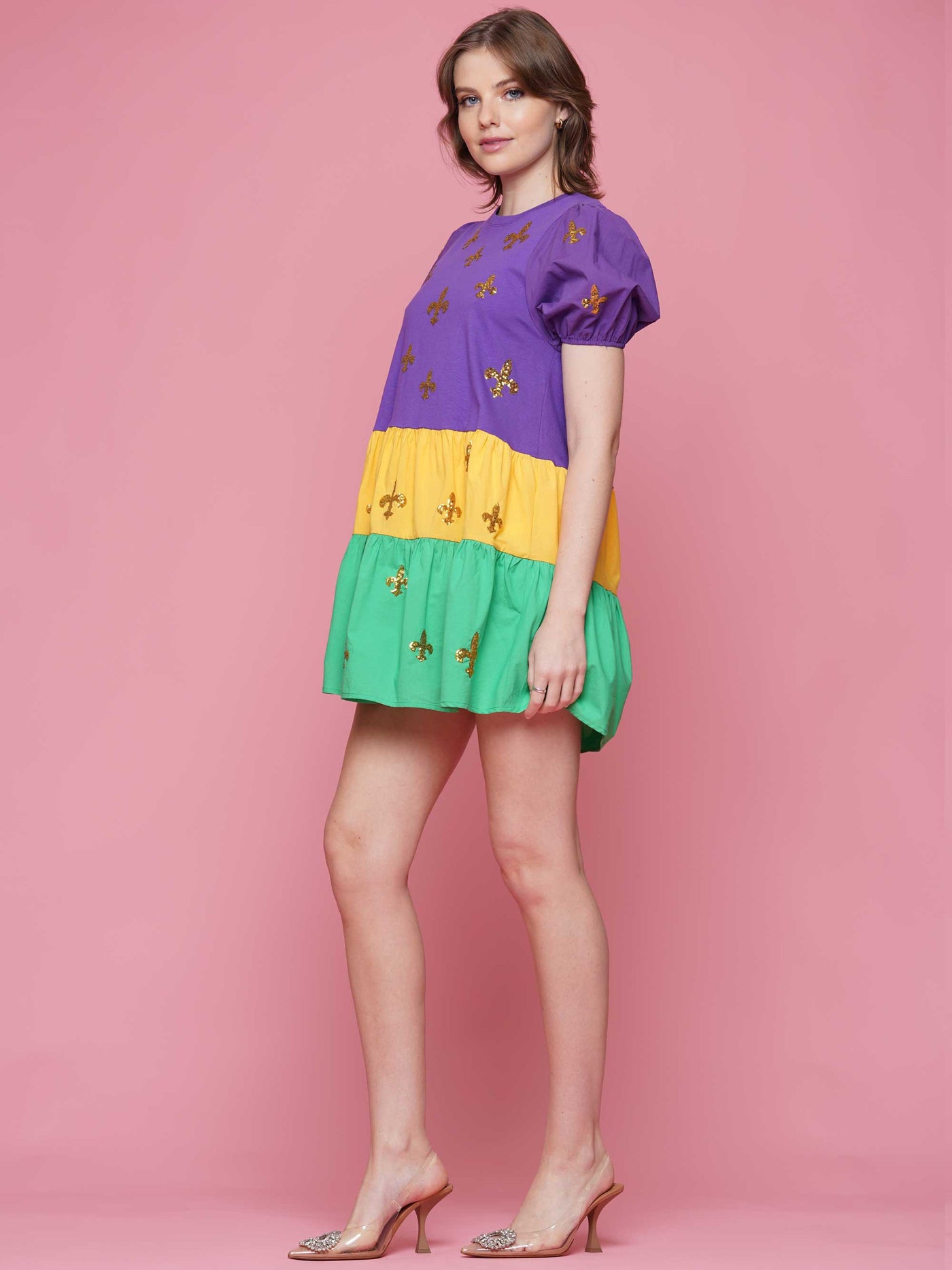 Mardi Gras Sequin Fleur De Lis Baby Doll Dress (S-XXL)