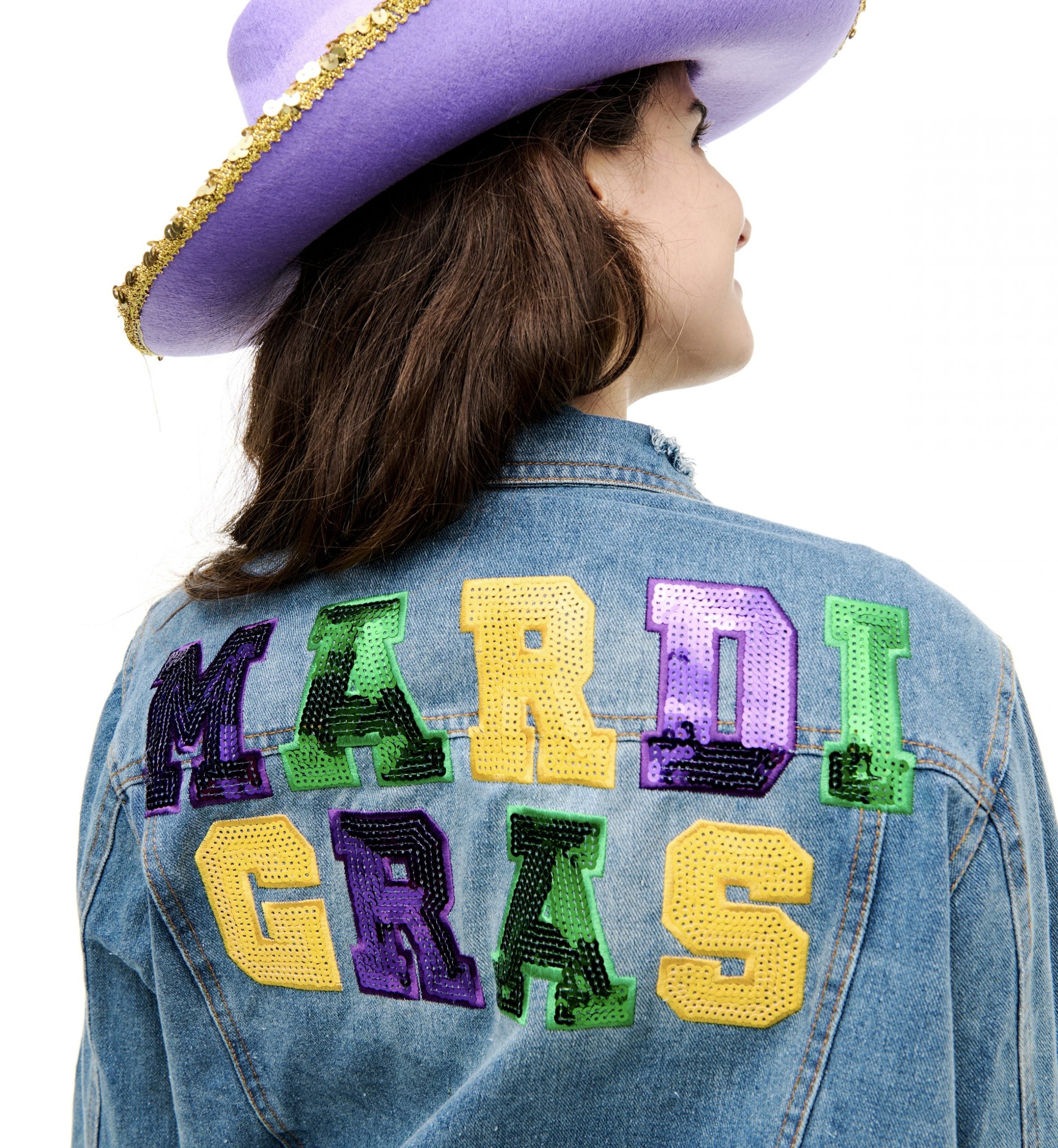 Mardi Gras Sequin Word Denim Jacket