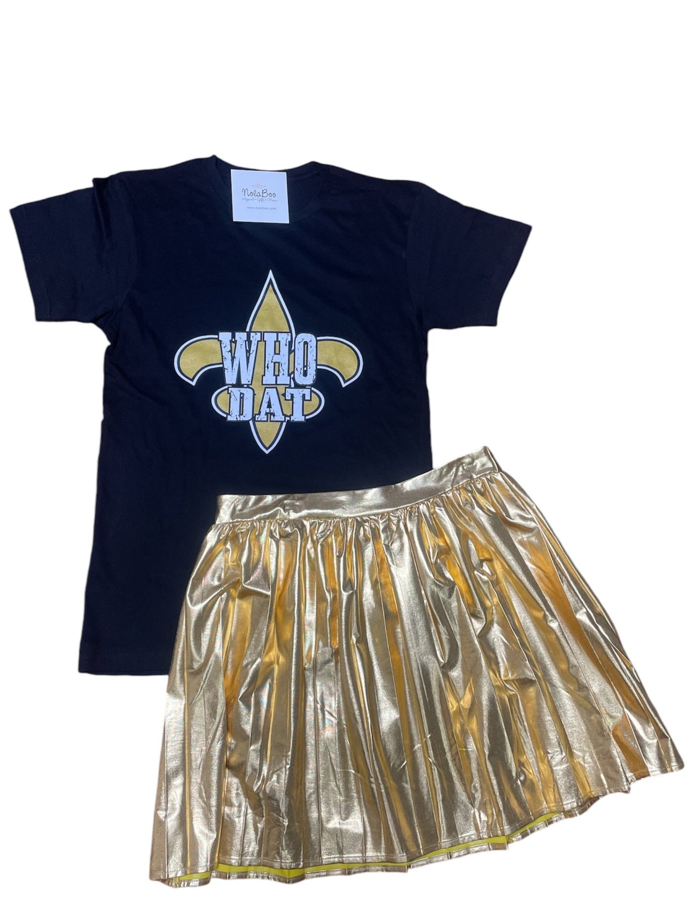 Adult Who Dat With Gold Fleur De Lis T Shirt S-3XL