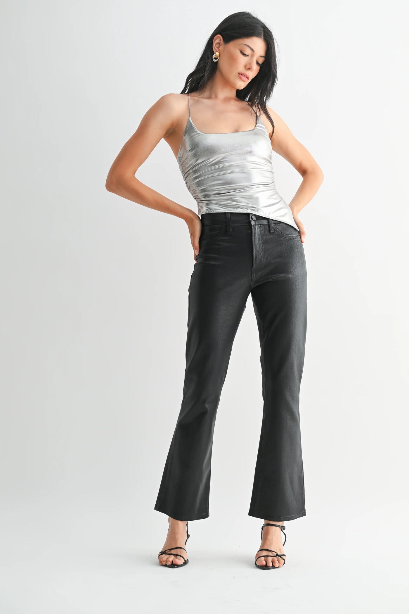 Black Coated Slim Bootcut Cropped Jeans