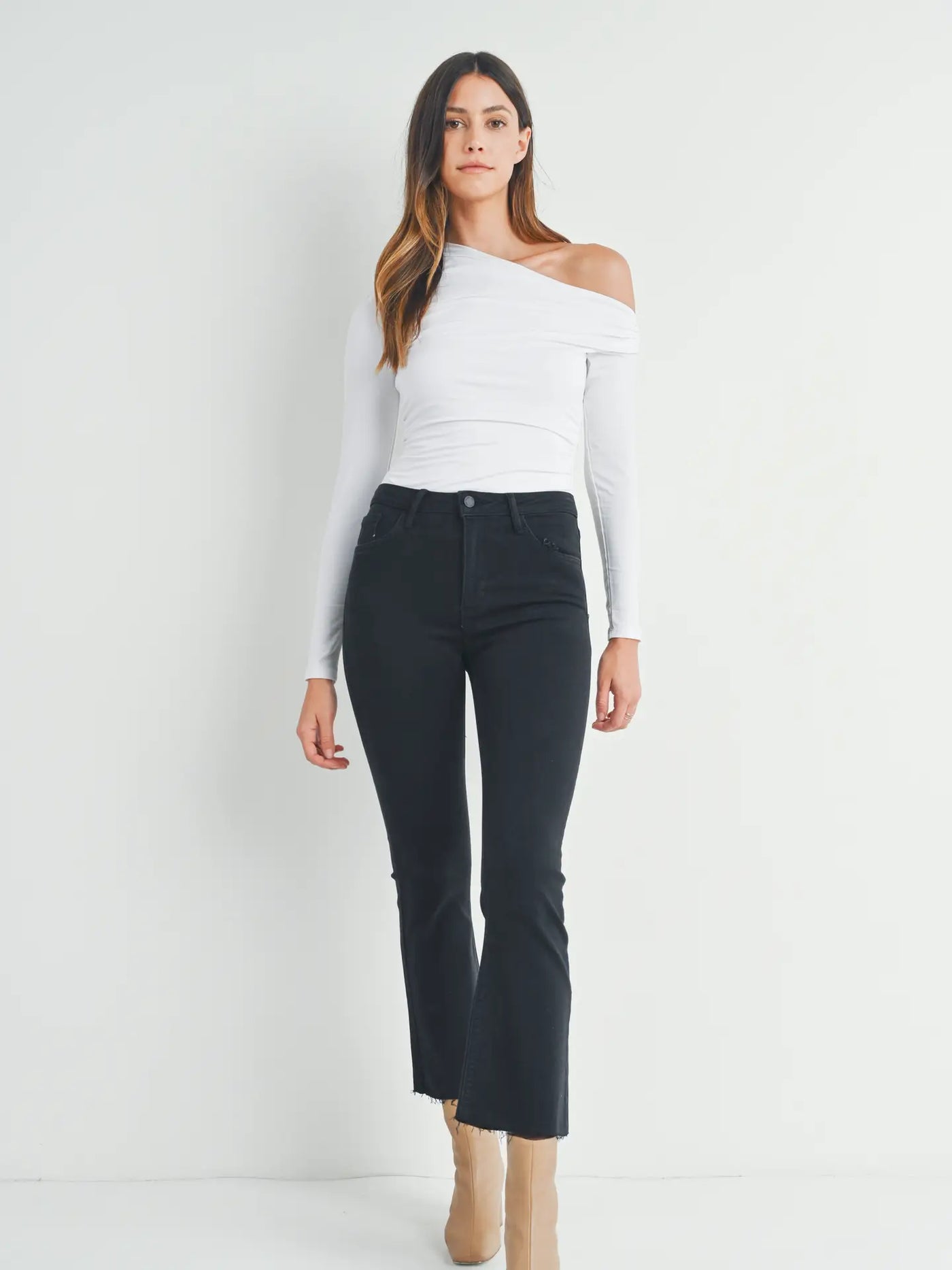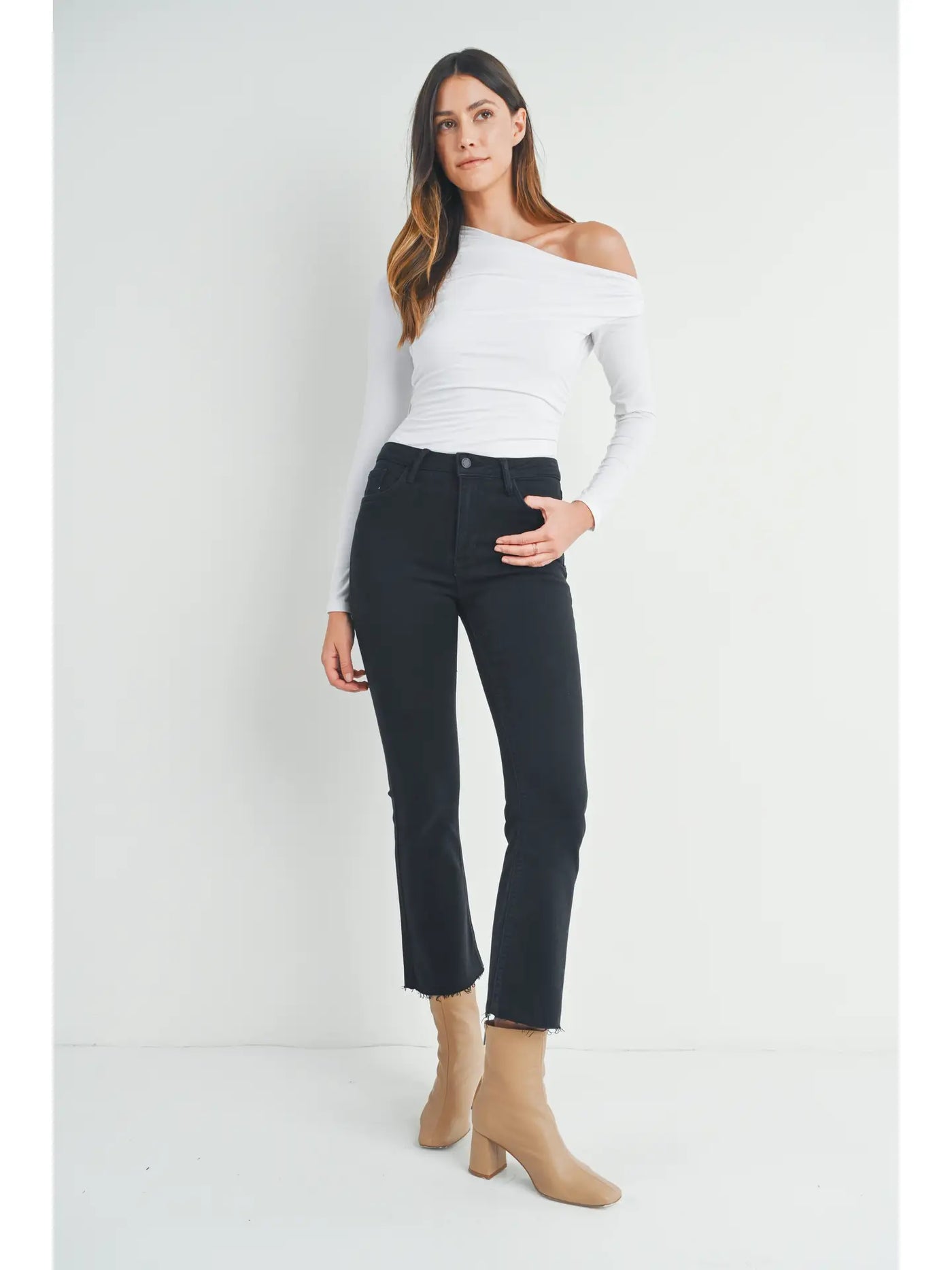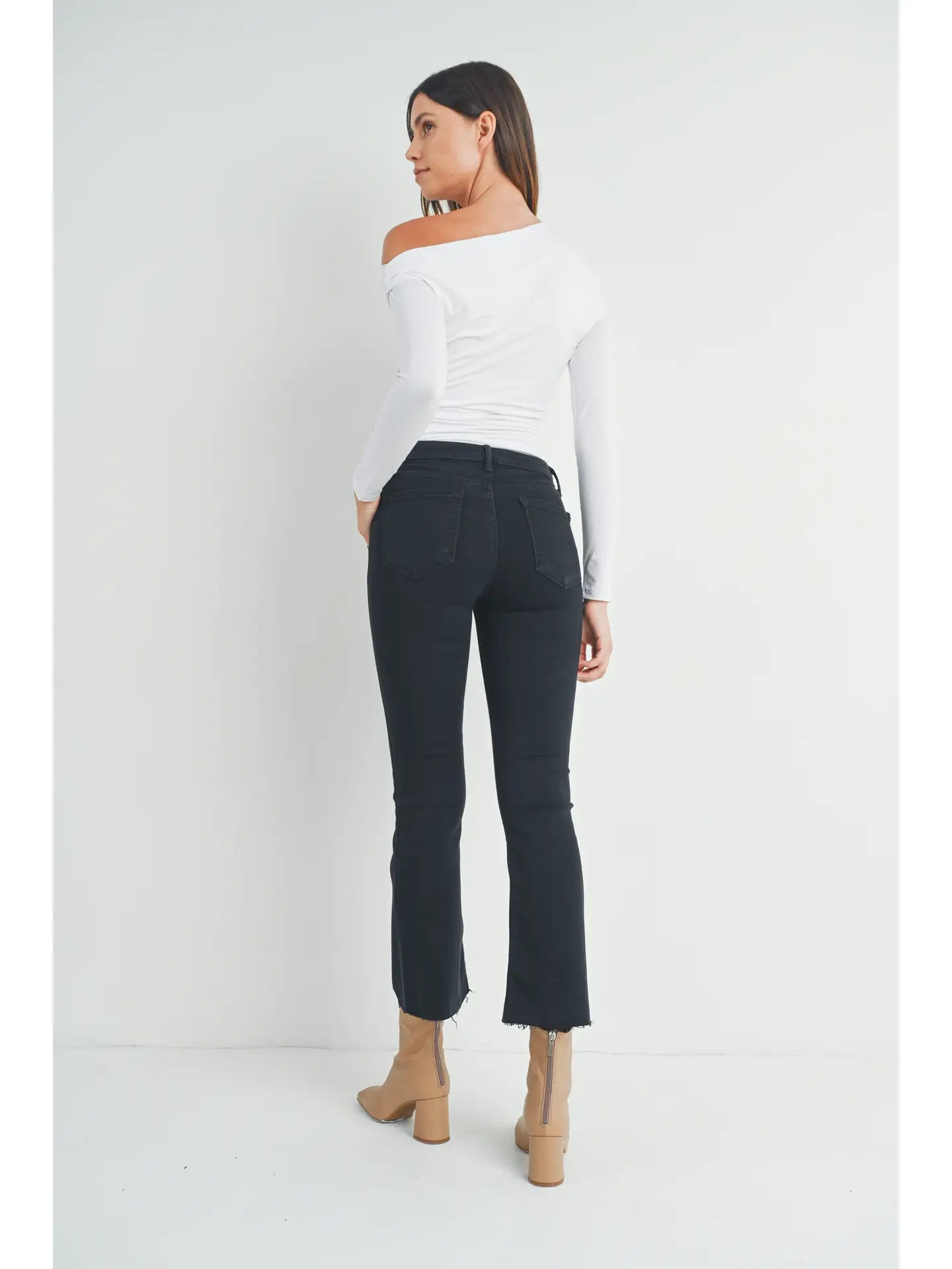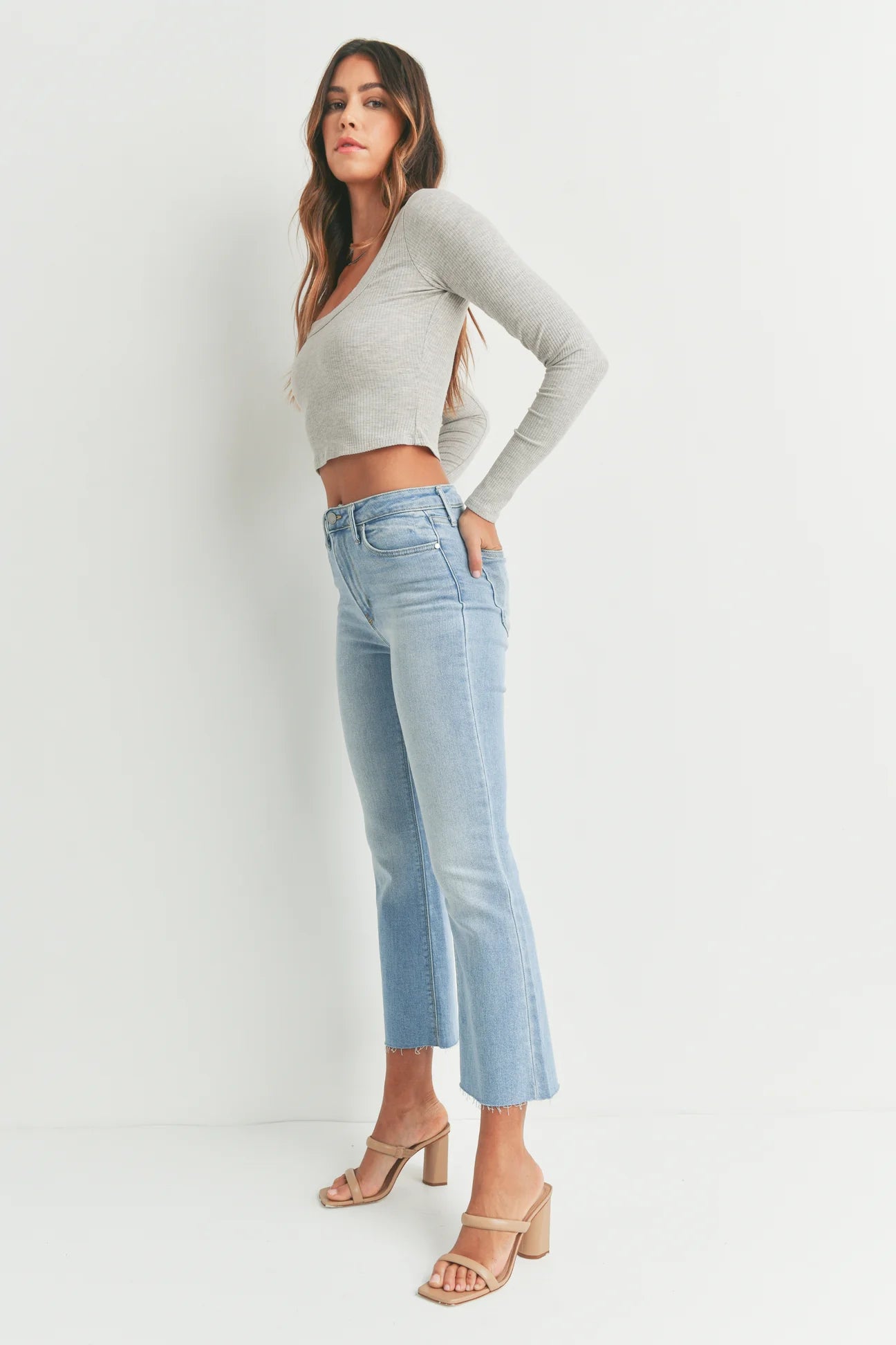 High Rise Denim Tonal Crop Flare Jeans In 6 Color Washes