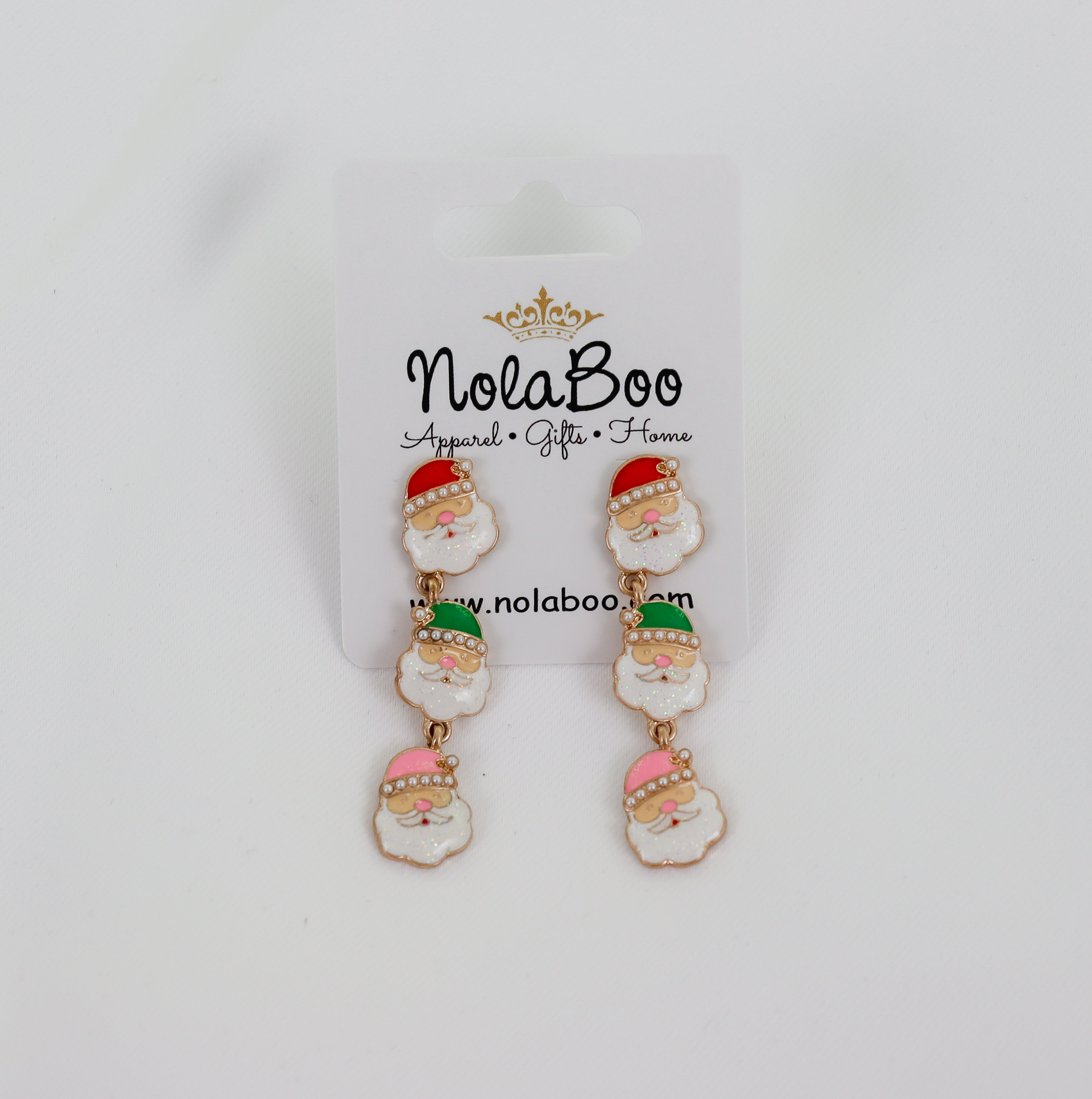 Pearl Studded Enamel Santas Statement Earrings