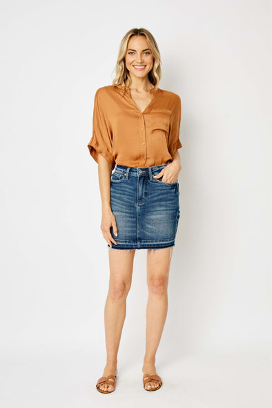Emerson Placket Shirred Sleeve Band Top in 2 Colors (S-3X)