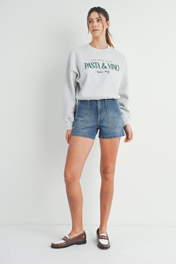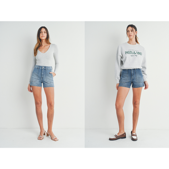High Rise Utility Cargo Short in Light Denim or Medium Denim