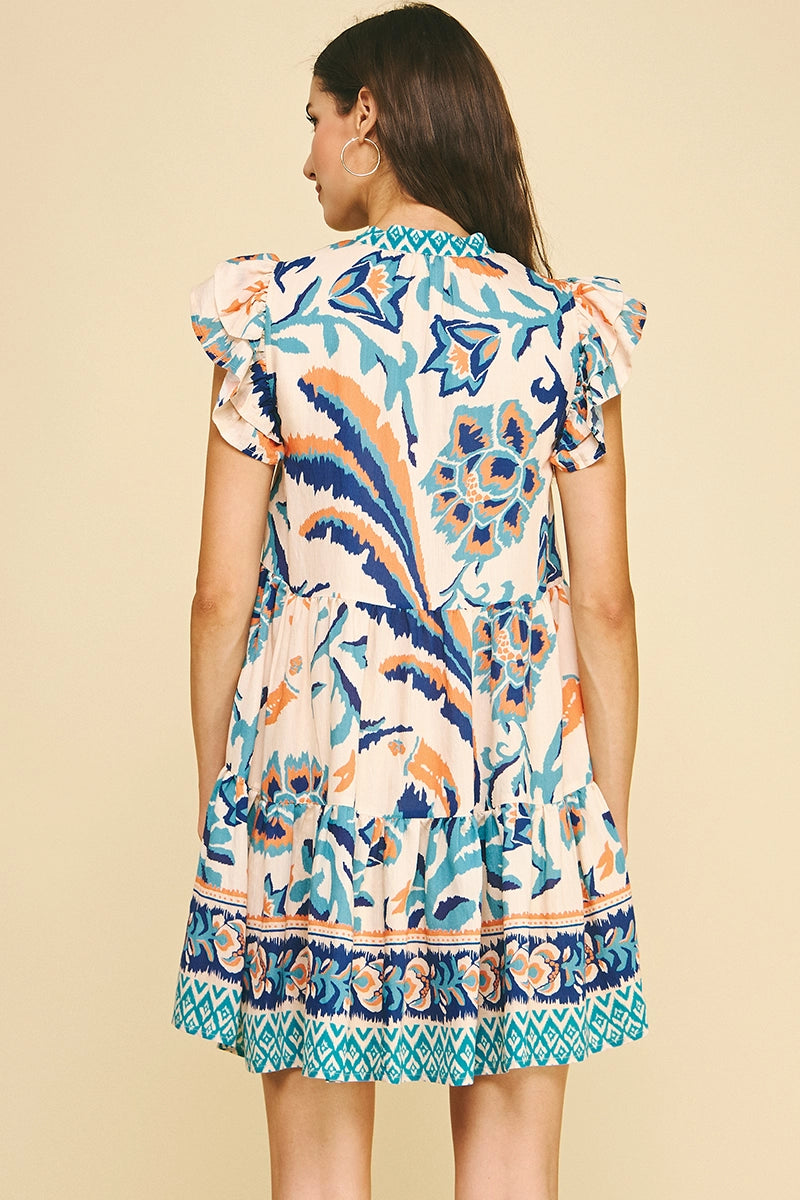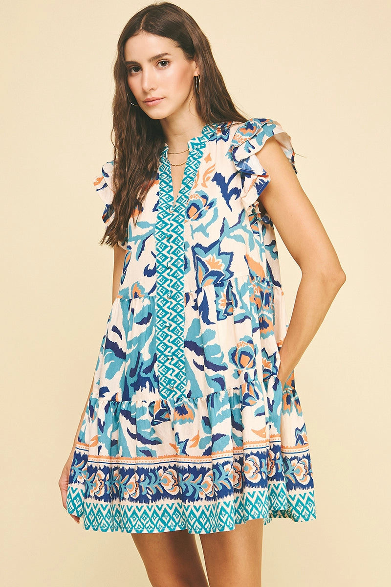 Blue Contrast Floral Mini Dress