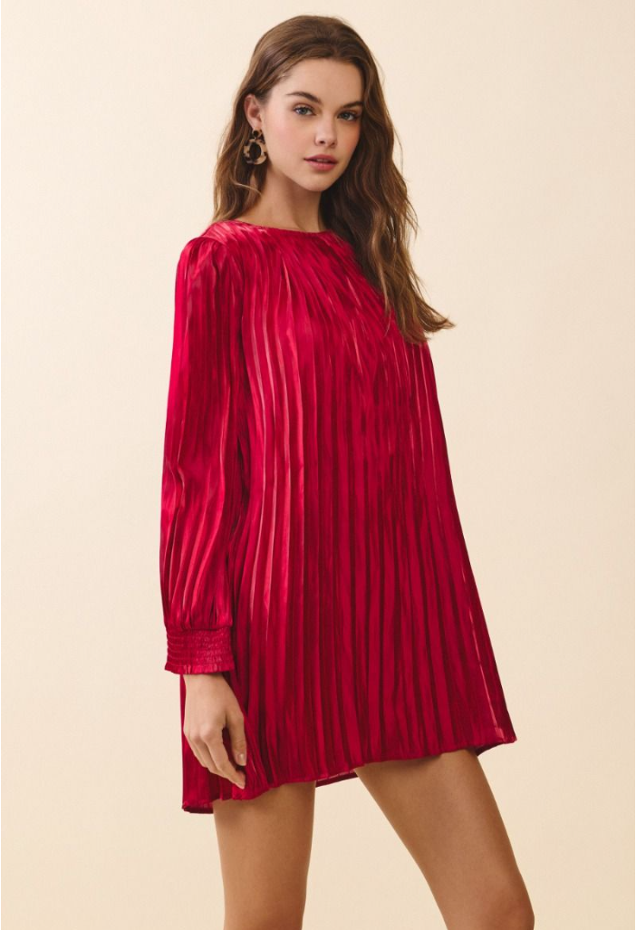 Metallic Pleated A Line Mini Dress
