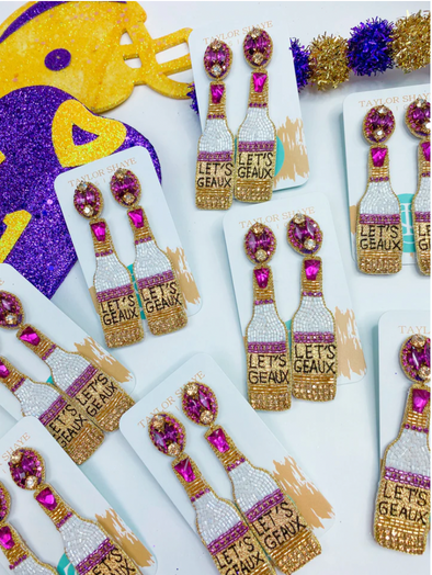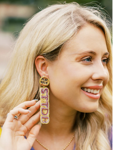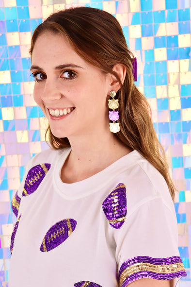 Brianna Cannon Purple and Gold Glitter LSU Earrings