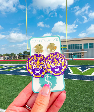 Brianna Cannon Mini Purple Geaux Tigers Earrings