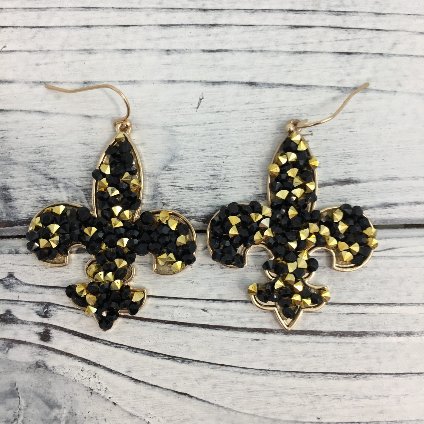 Black And Gold Confetti Fleur De Lis Earrings
