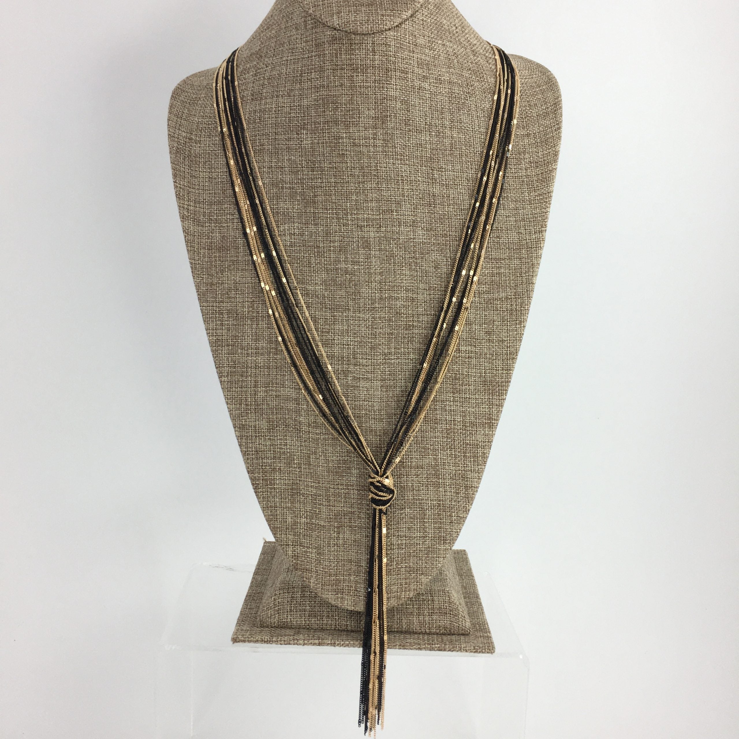 Long Knot Chain Necklace In Black Or Gold