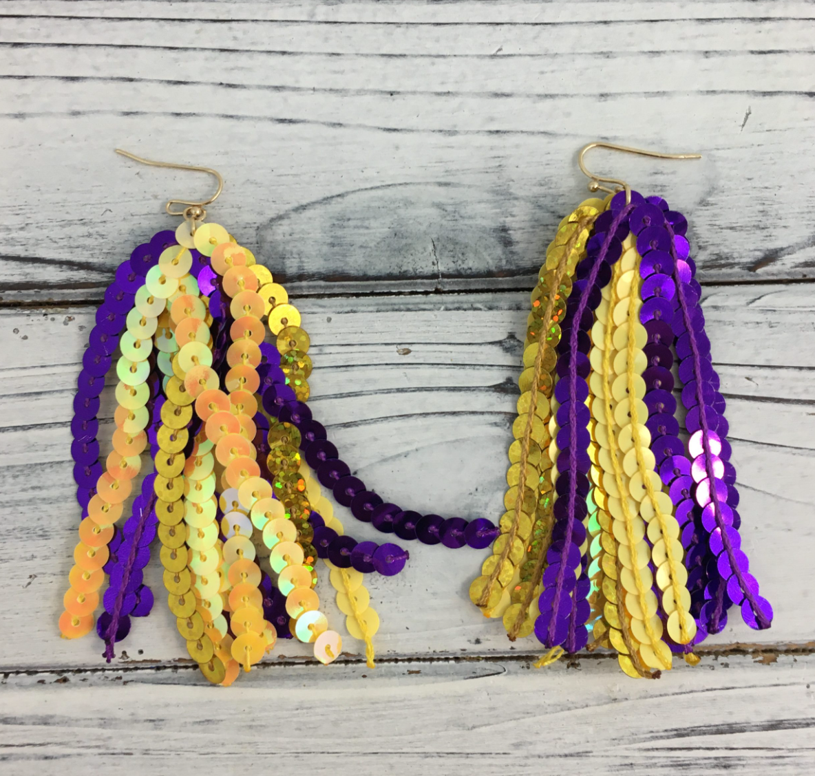 Purple And Yellow Sequin Tassel Earrings