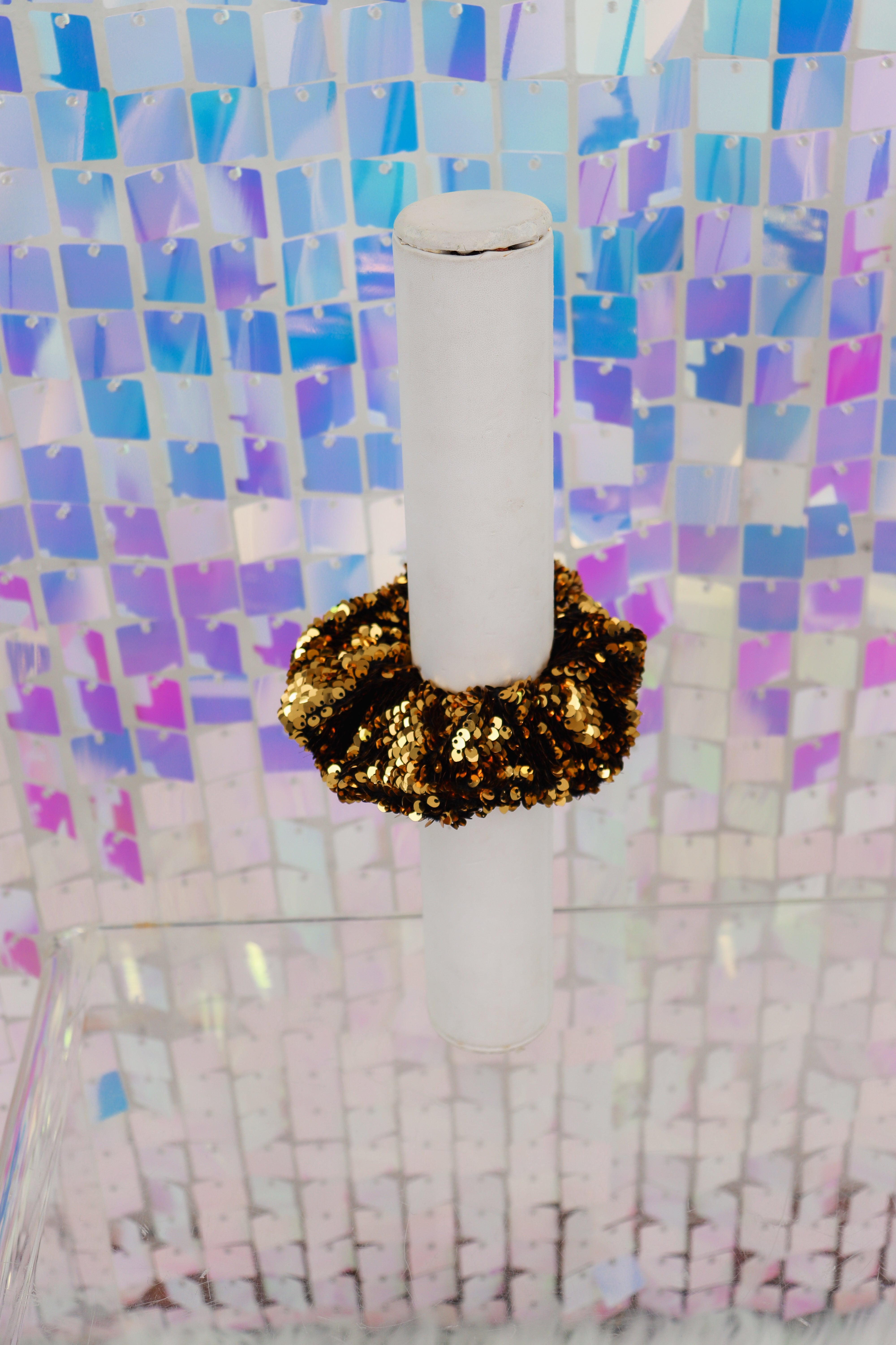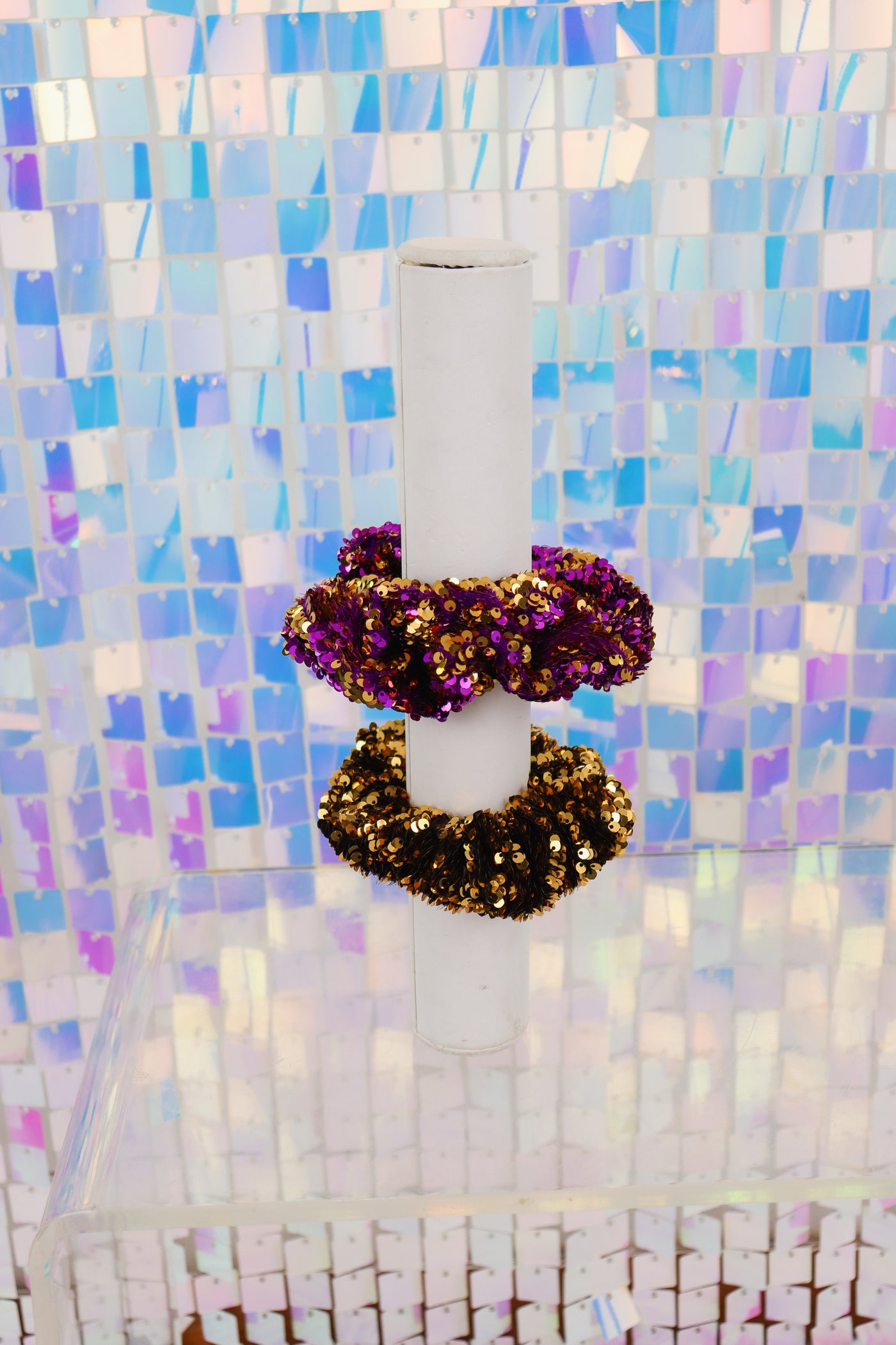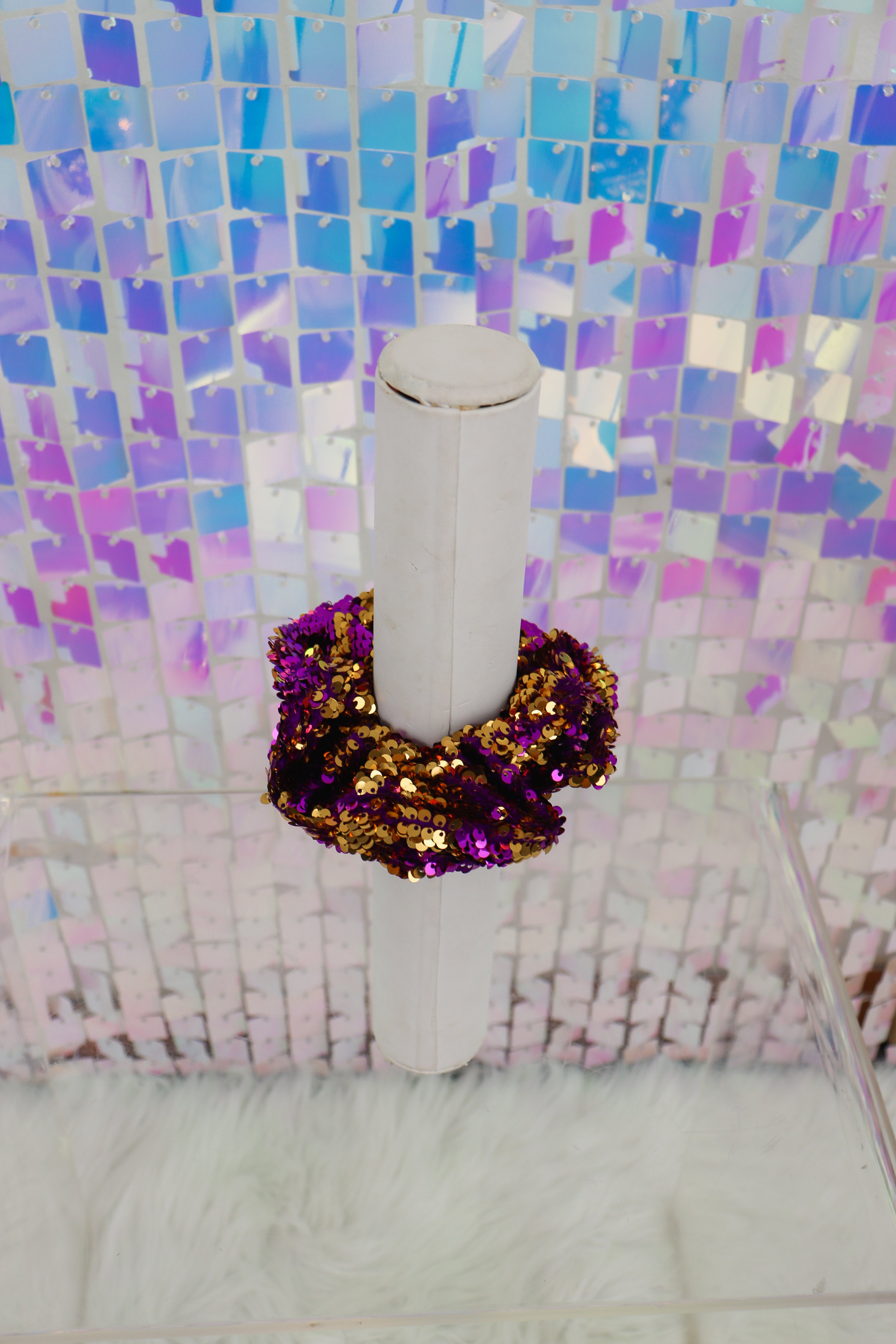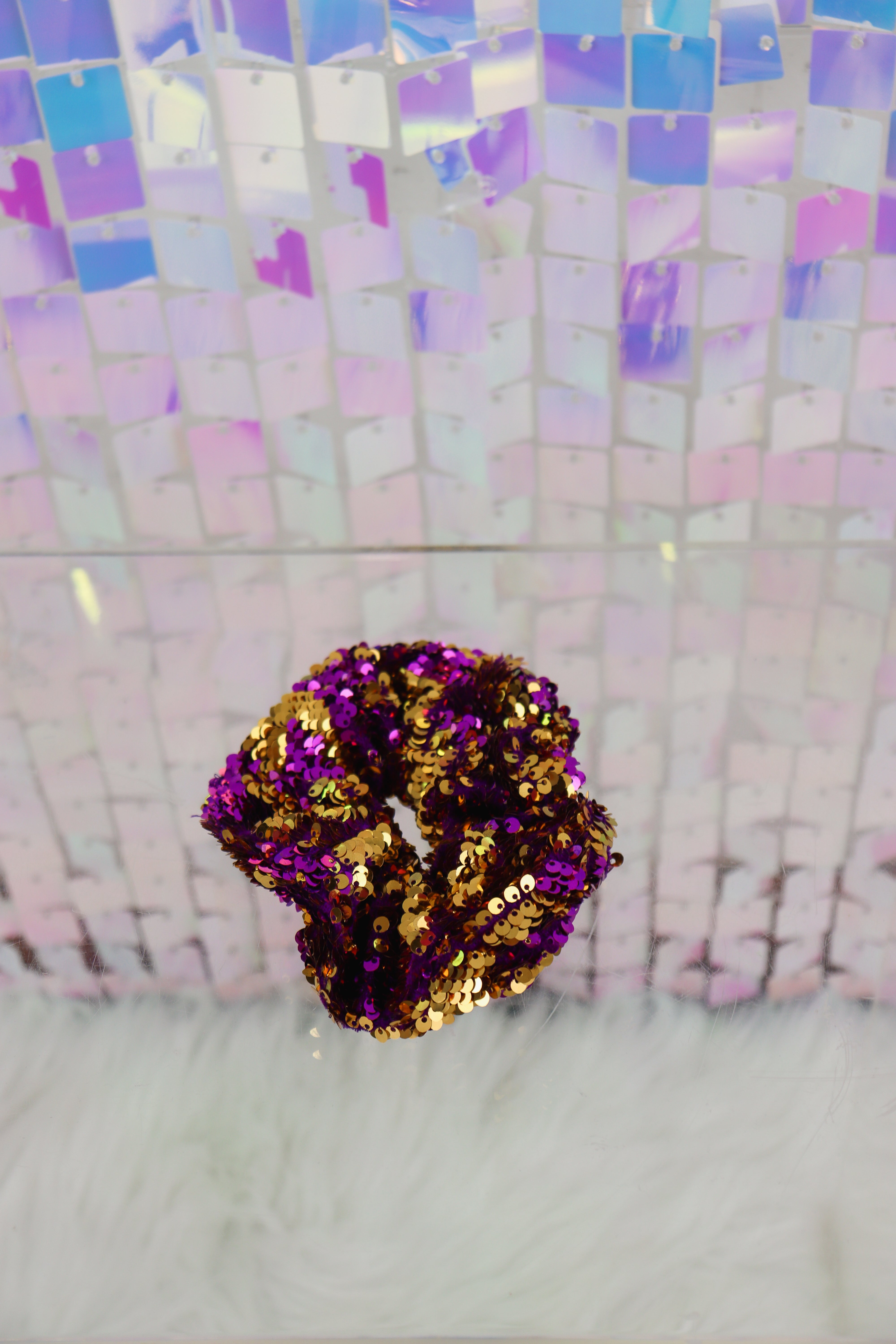 Reversible Sequin Scrunchie In Gold Or Purple/Gold