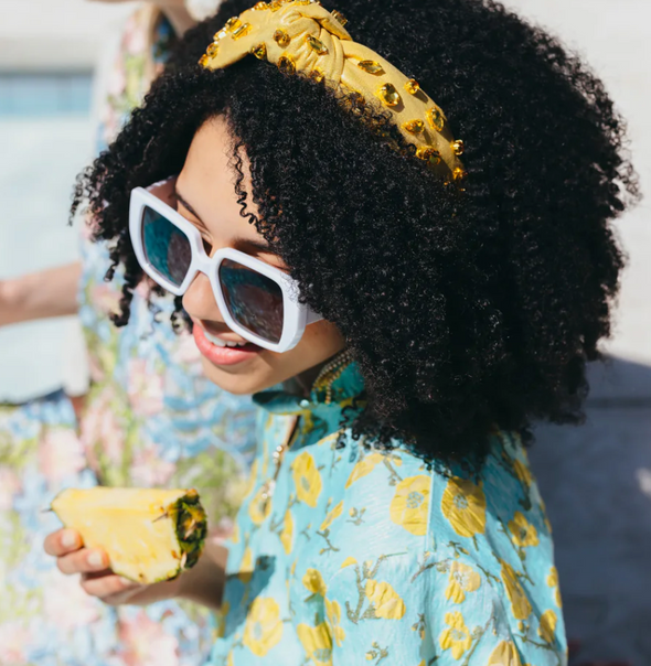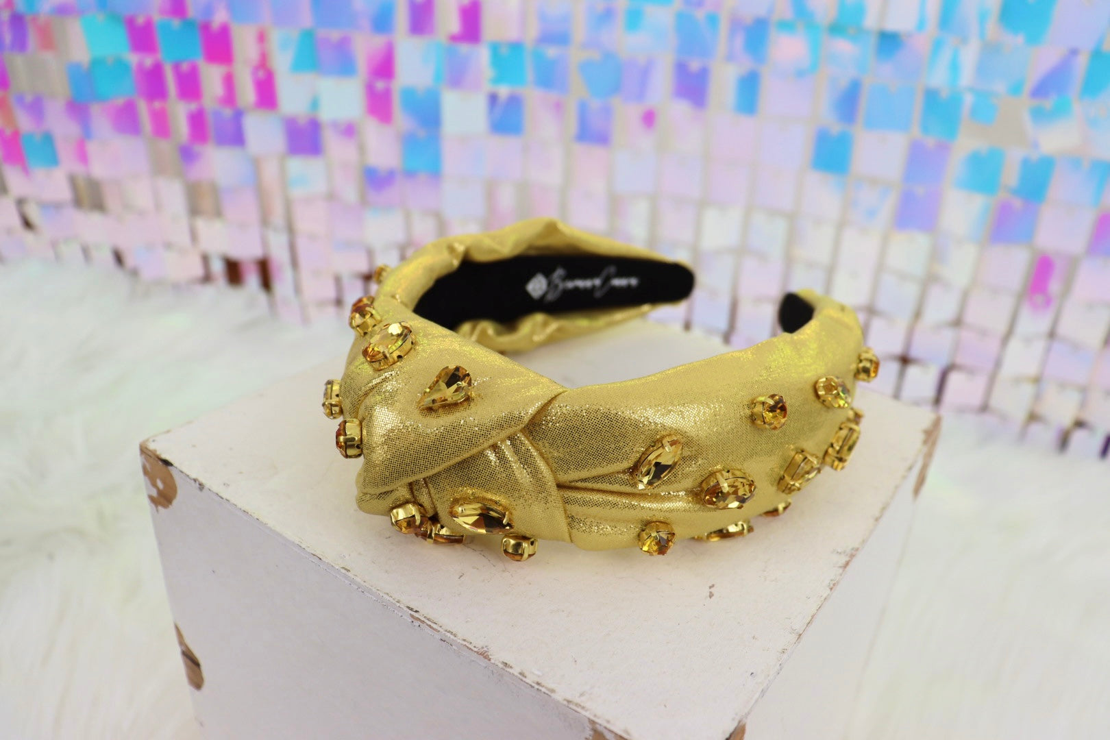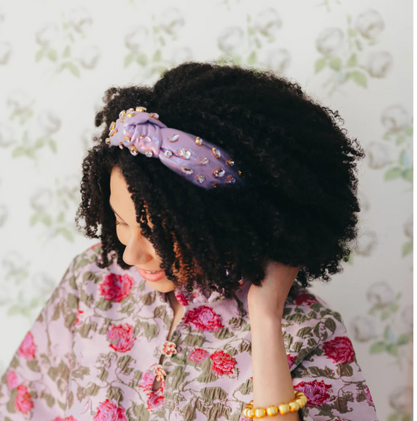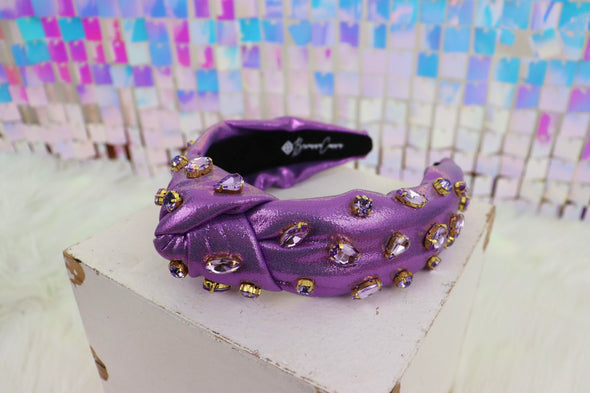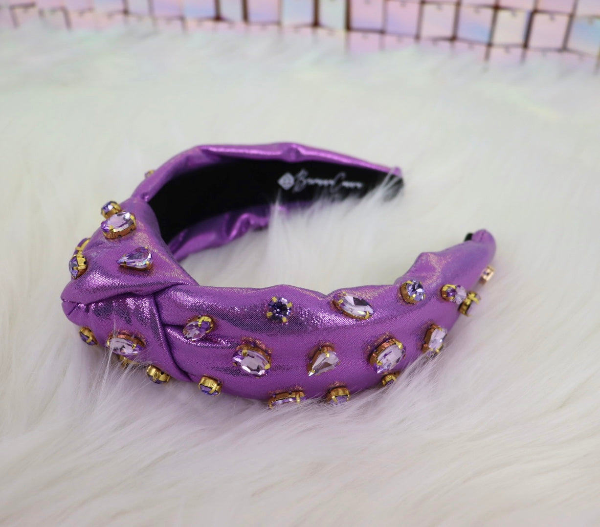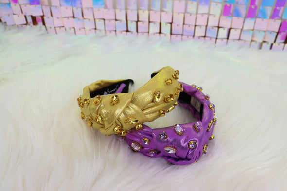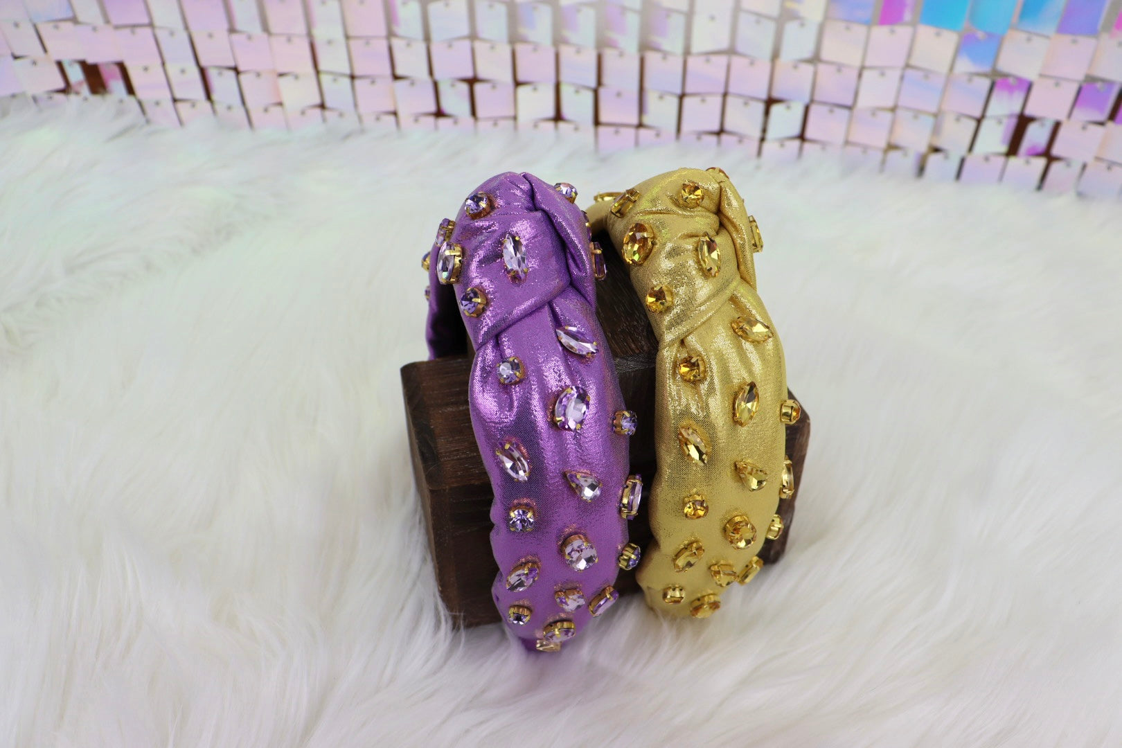 Brianna Cannon Shimmer Headband with Hand Sewn Crystals in Yellow or Purple