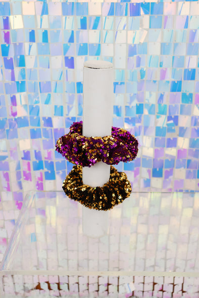Reversible Sequin Scrunchie In Gold Or Purple/Gold