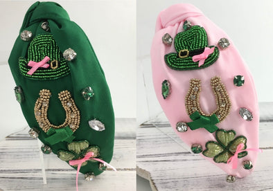 St. Patricks Theme Knot Headband In Green Or Pink
