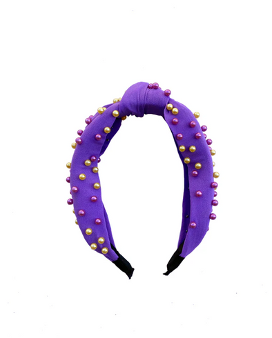 Lavender Headband With Purple And Gold Pearls