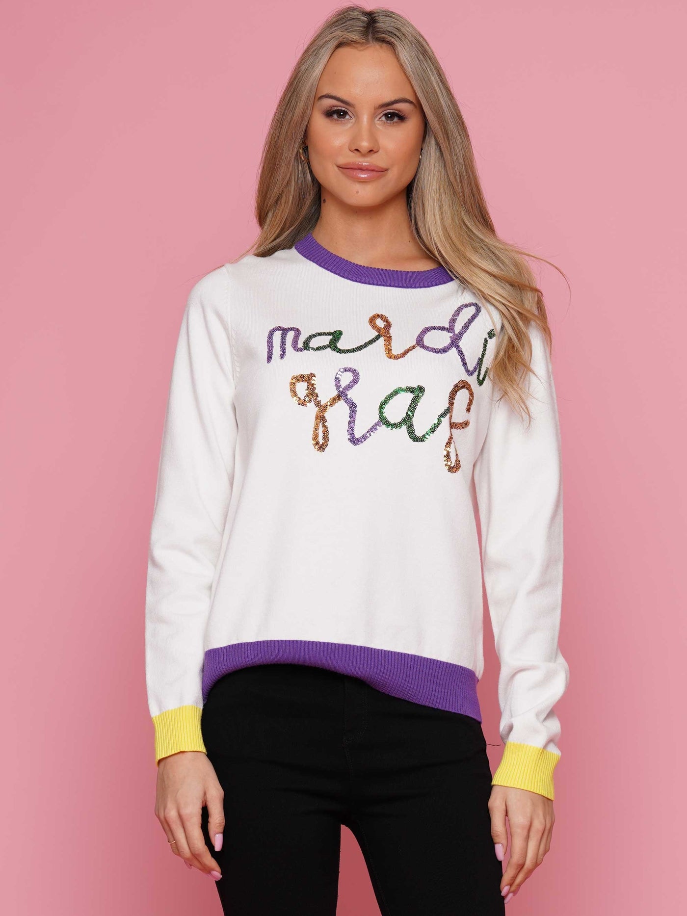 Mardi Gras Sequin Long Sleeve Sweater Top (S-XXL)