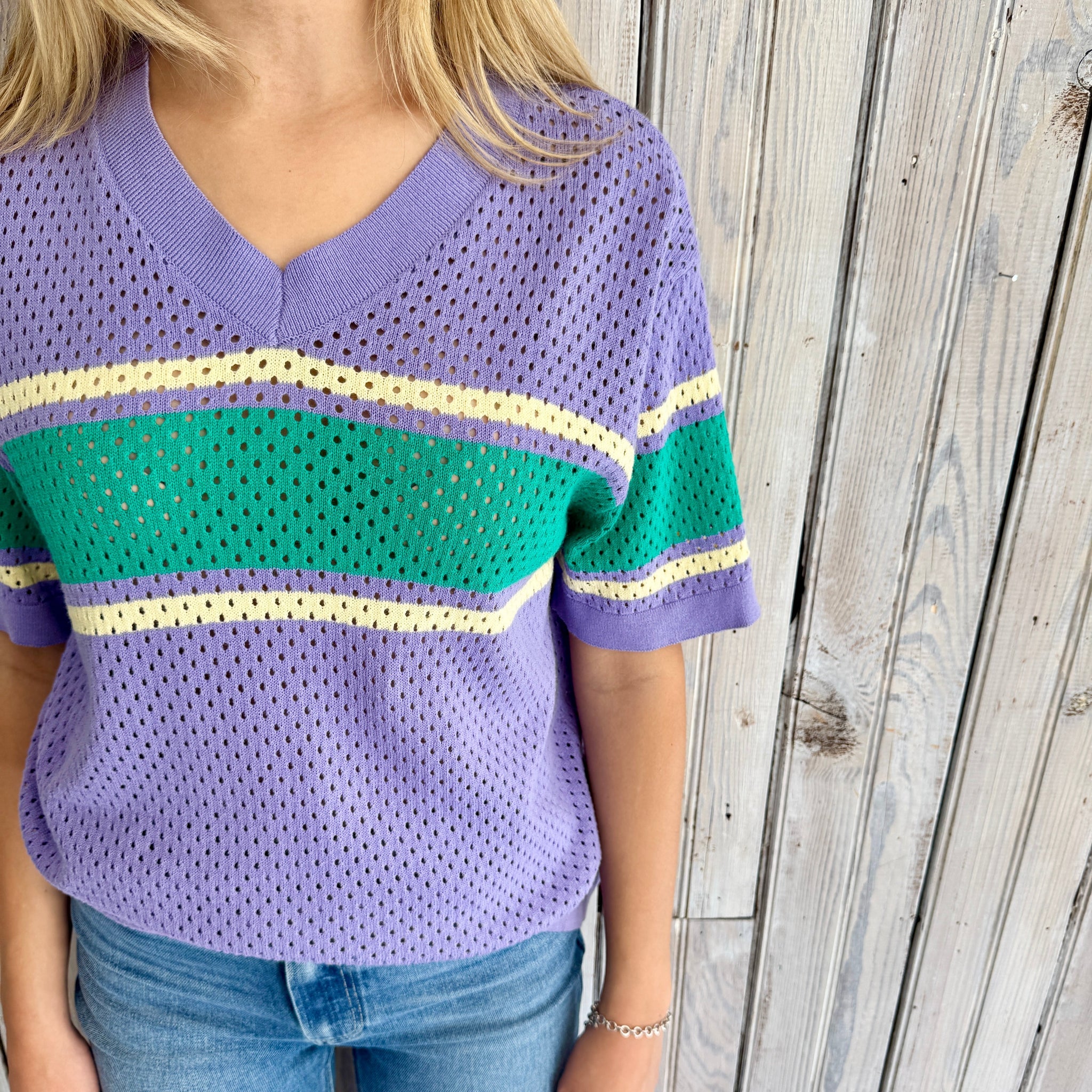 Pastel Purple Loose Knit Stripe Jersey (XS-XL)