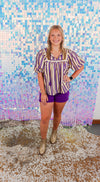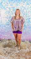 Penny Purple/Yellow Pin Stripe Top (XS-XL)