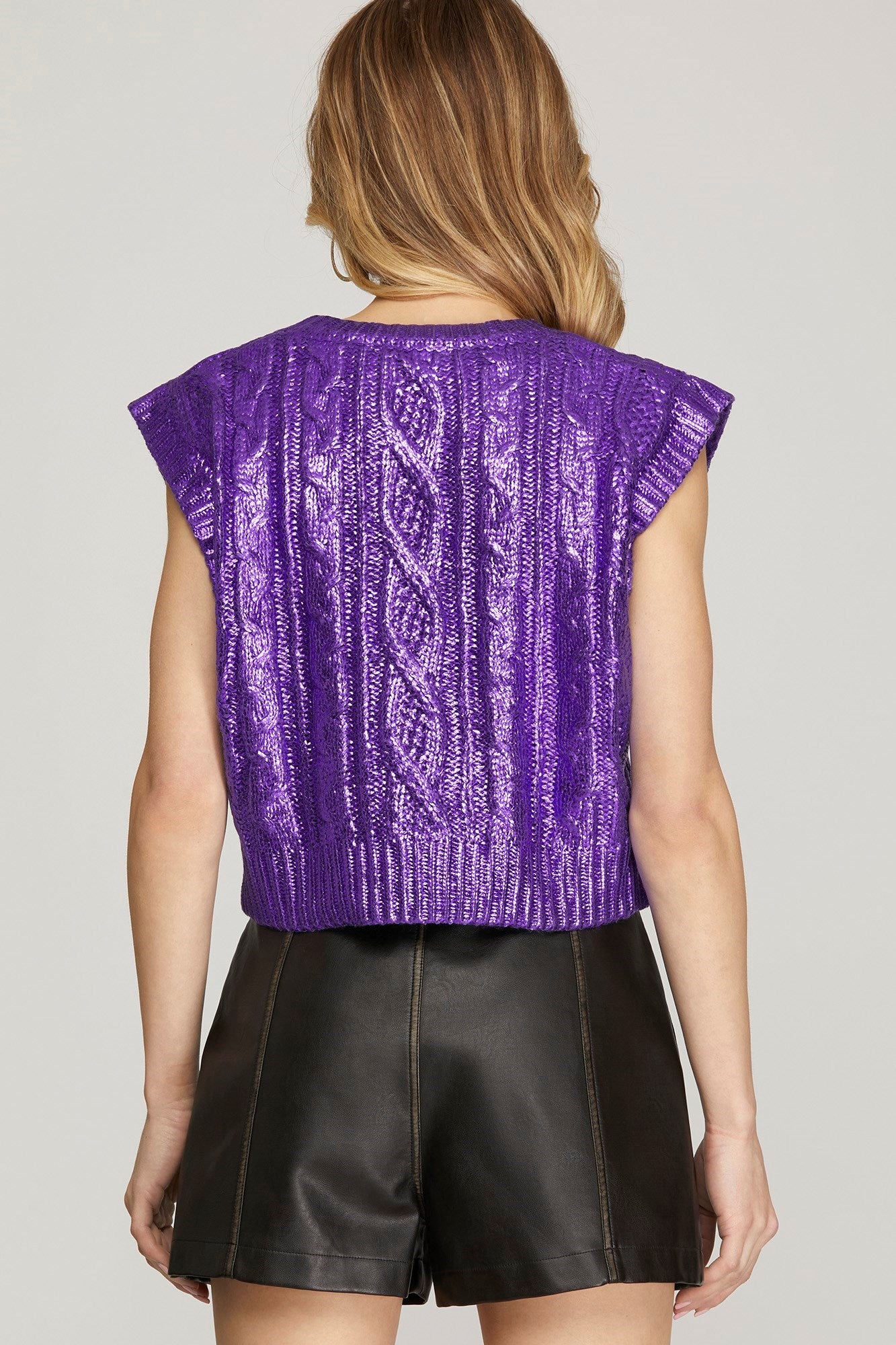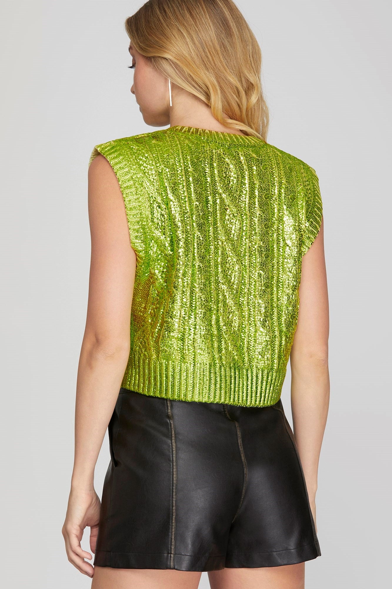 Sleeveless Cable Knit Metallic Crop Sweater In 3 Colors