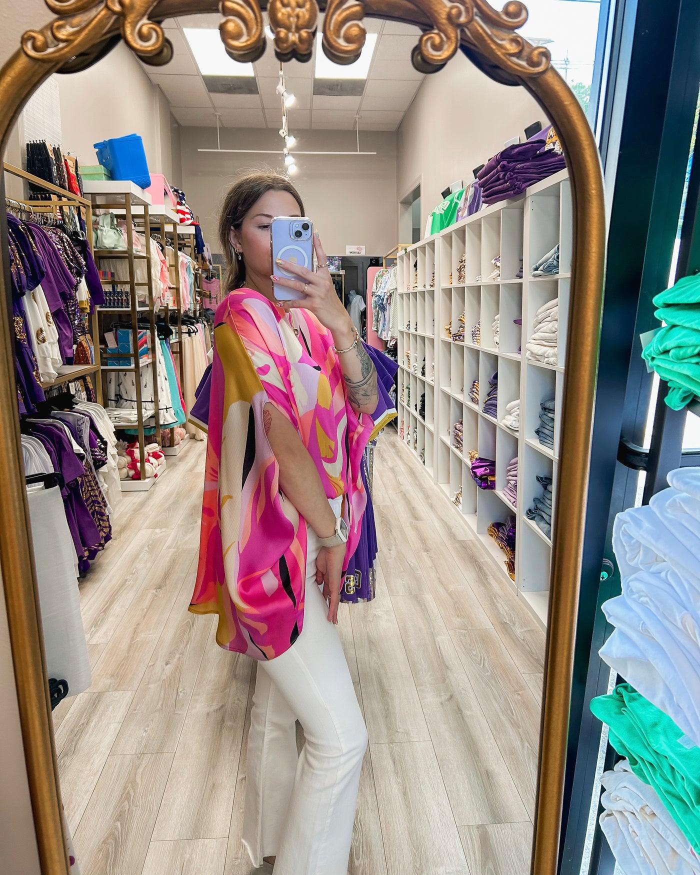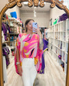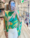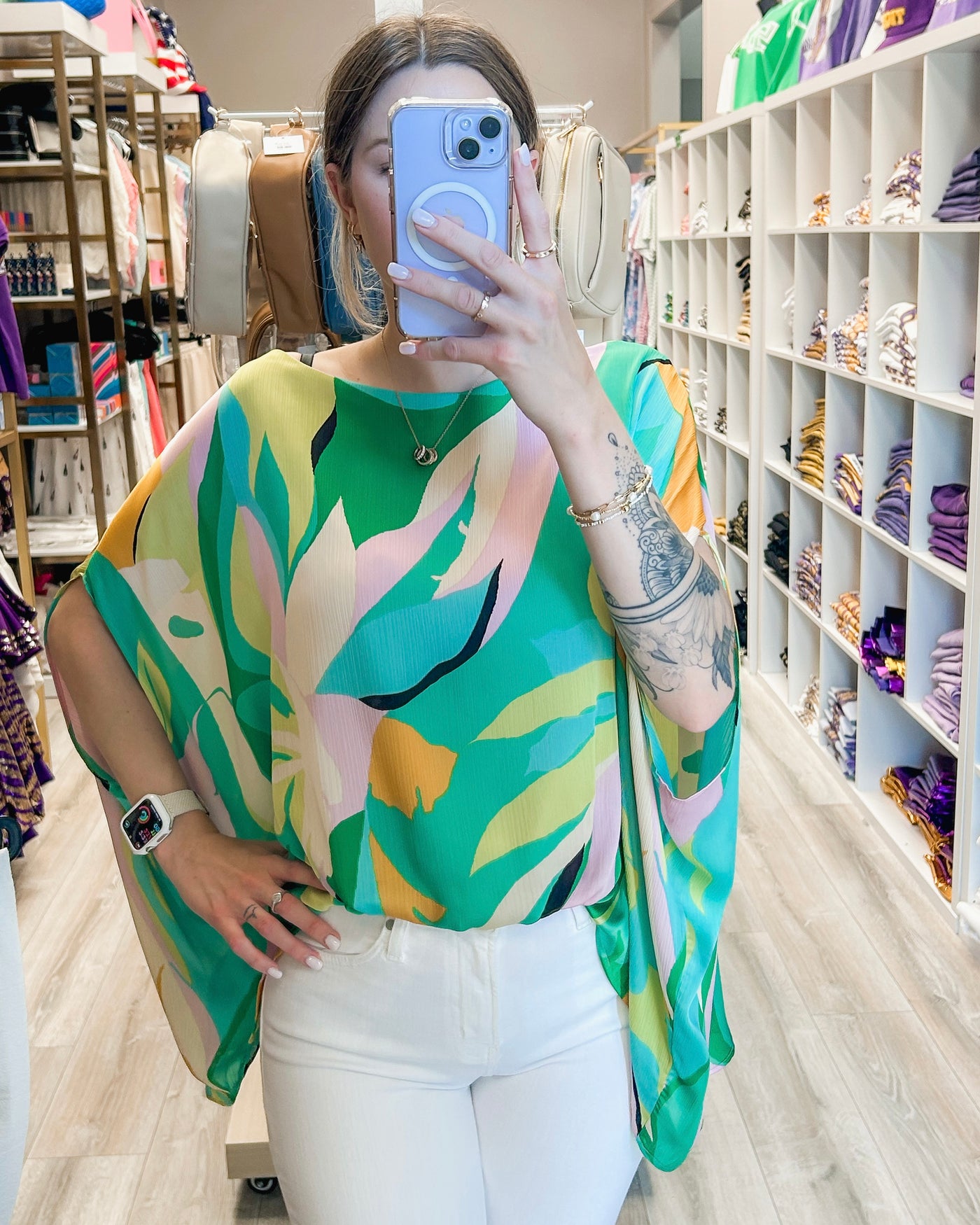 Chiffon Tropical Print Oversized Caftan Blouse In 2 Colors