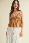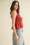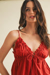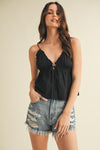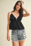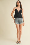 Elastic Ruffle V Neck Cami Top In 3 Colors
