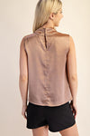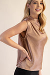 Rhinestone Mock Neck Sleeveless Top