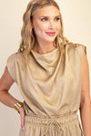 Shiny Sleeveless Blouse in Taupe