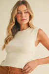 Sleeveless Knit Open Back Top in Cream or Mocha