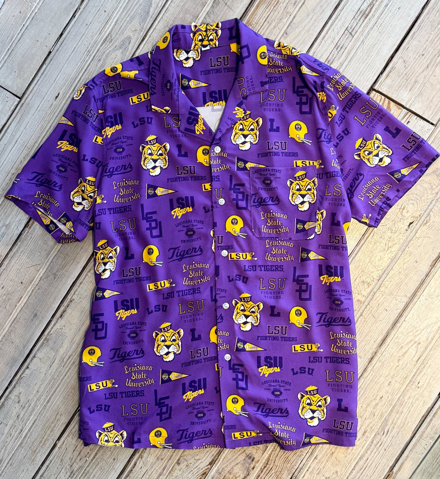 Get ready to show your team spirit in ultimate comfort and style with our exclusive Gameday Icon Hawaiian Shirts, available in two bold and vibrant designs that celebrate both New Orleans culture and LSU pride. Designed with breathable fabric and a relaxed fit, these button-up shirts are perfect for game days, tailgates, or just repping your favorite city and team any day of the week.