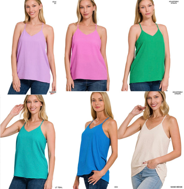 Adjustable Strap V Neck Cami Top In 6 Colors