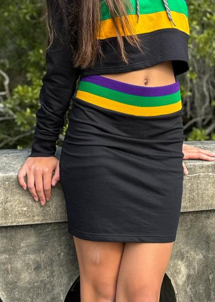 Adult Black Skort With Mardi Gras Waistband (S-3XL)