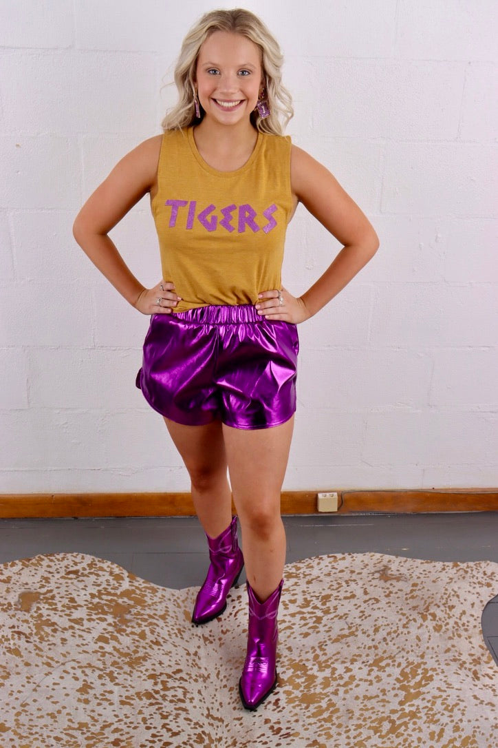 Faux Leather High Waisted Metallic Shorts In 4 Colors