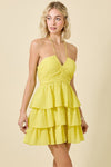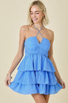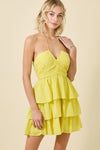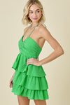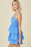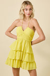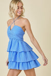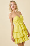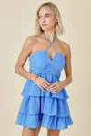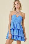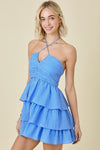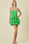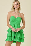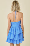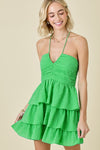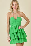 Gingham Ruched Halter Multi Tiered Mini Dress In 3 Colors