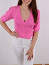 Half Sleeve Wrapped Side Tie Knot Knit Top