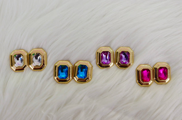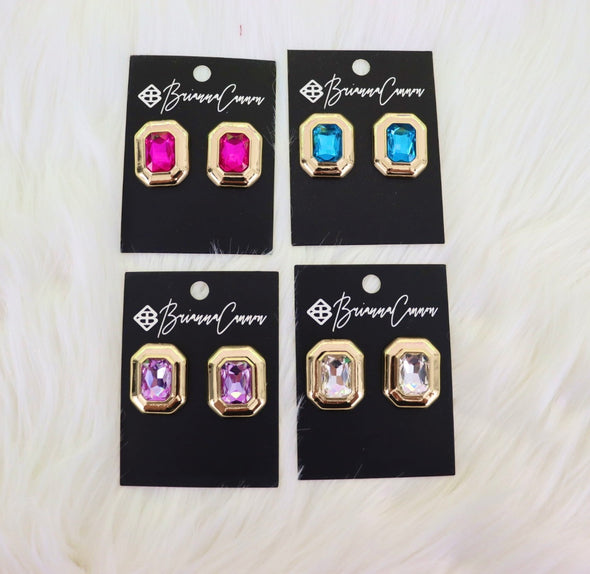 Brianna Cannon Jeweled Studs in Lavender, Blue, Clear or Pink