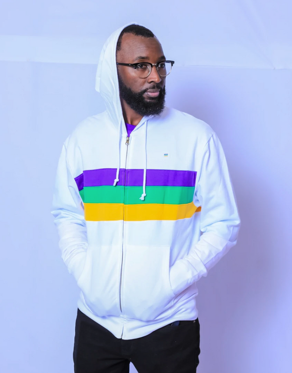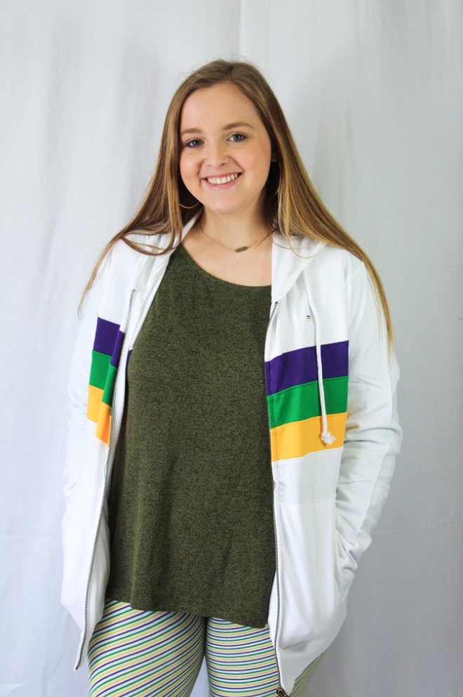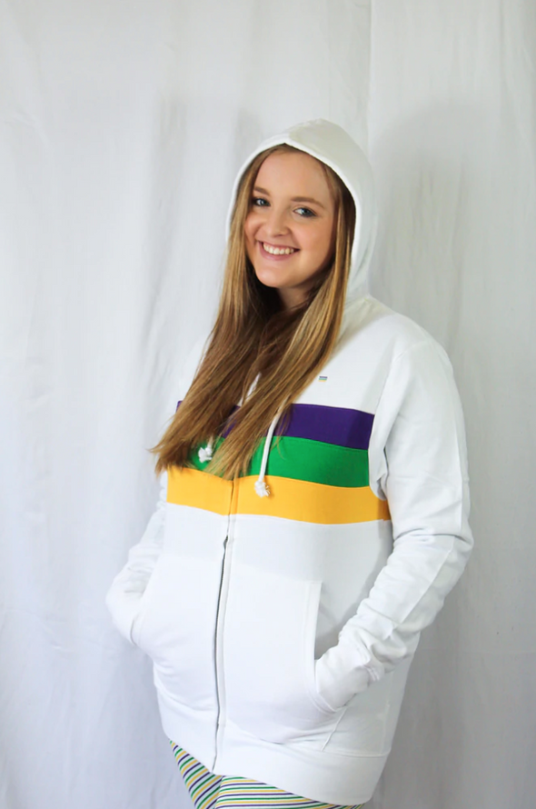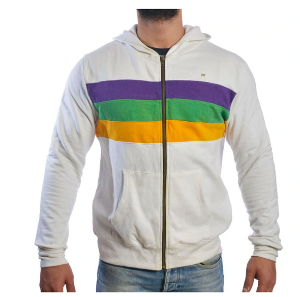 Mardi Gras Adult White Chest Stripe Hoodie (S-XXXL)