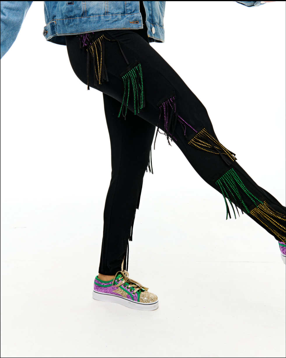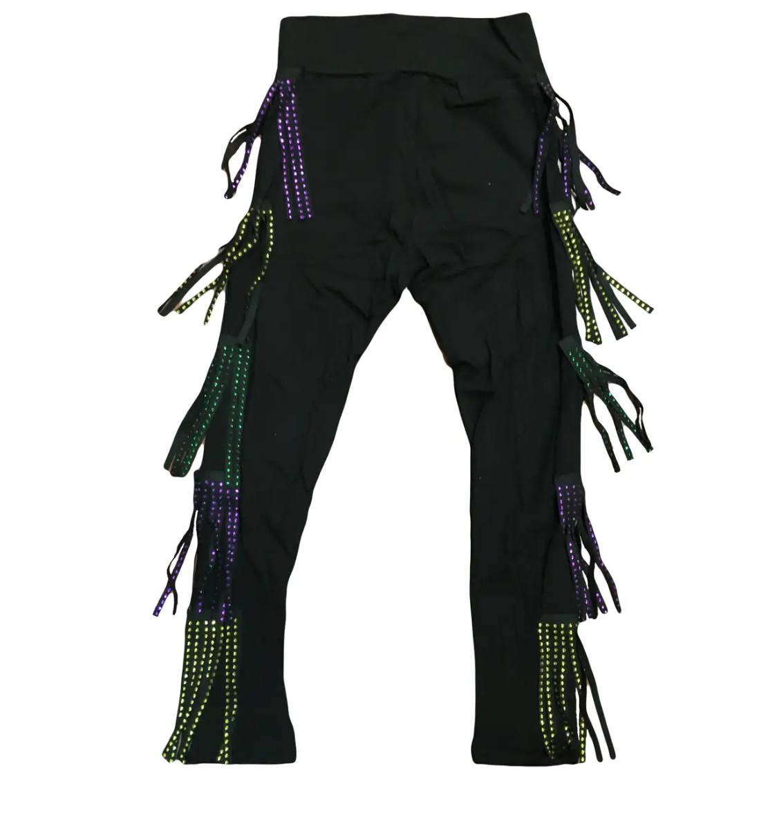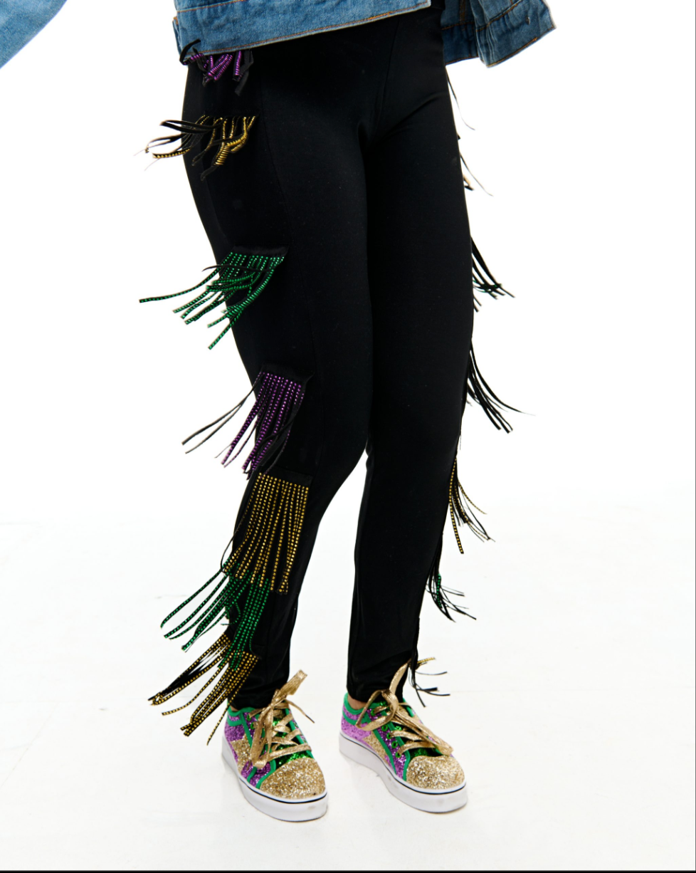 Mardi Gras Rhinestone Tassel Kids Leggings