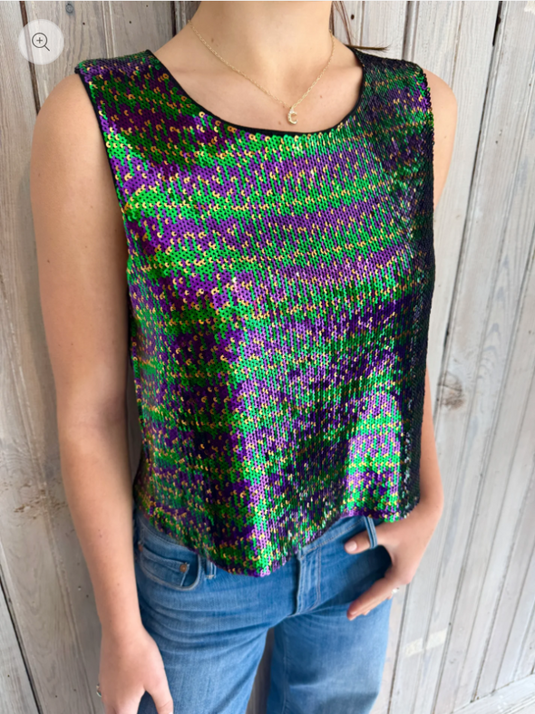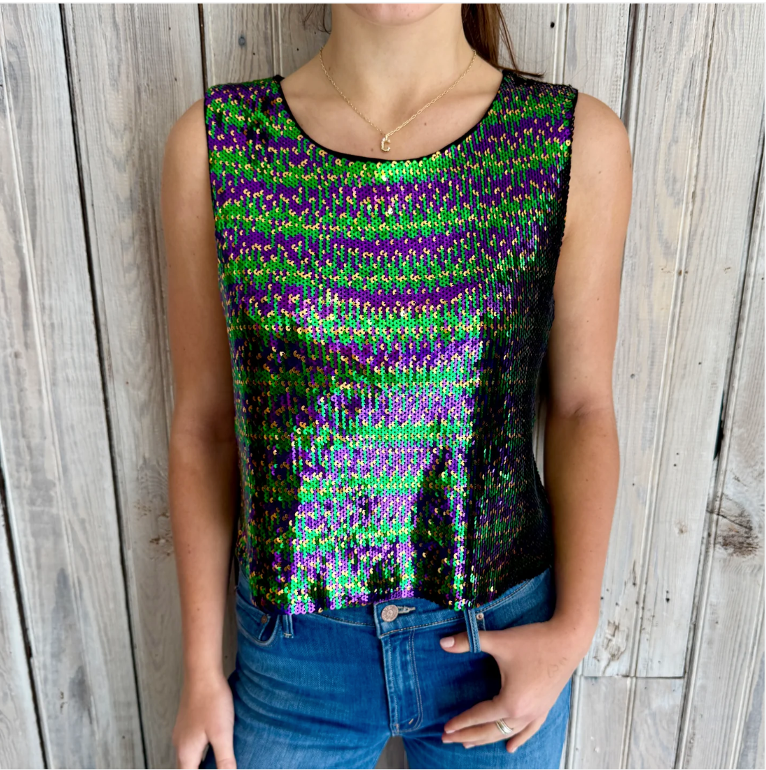 Mardi Gras Sequin Stripe Tank (XS-XL)